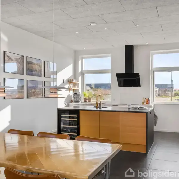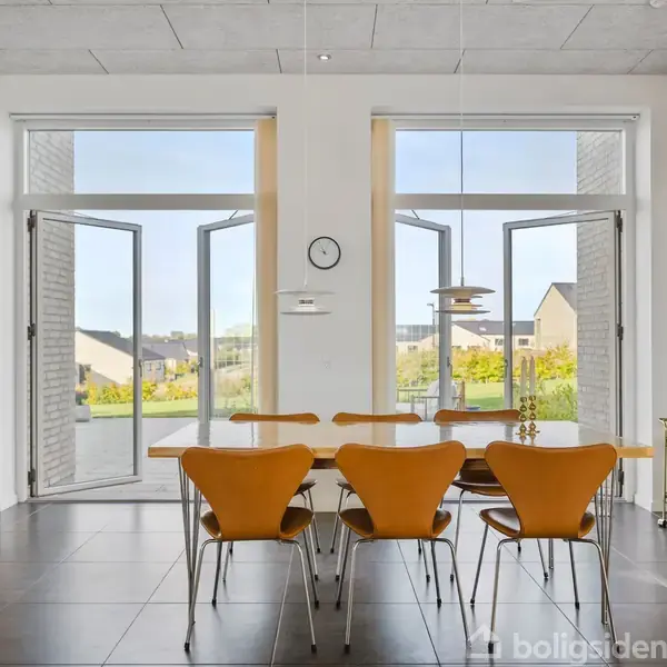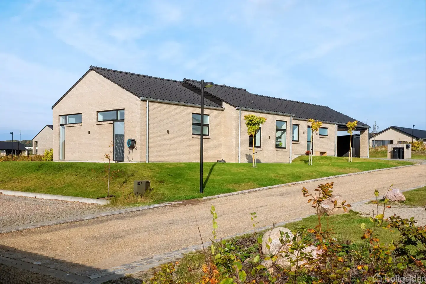 Åbent hus med tilmeldingskrav 3/2 - klik på billede - Kapitlet starter i denne skønne og moderne etplansvilla på 172 m², opført i 2020 og beliggende i det attraktive og familievenlige område Tirsbæk Bakker i Vejle Øst. Her får du et hjem, hvor både hjerte og håndværk går op i en højere enhed, og hvor hver eneste kvadratmeter er udnyttet med omtanke. Allerede ved ankomsten fornemmer man roen og kvaliteten. Den flotte murstensvilla ligger smukt placeret på grunden, og den dobbelte carport giver en praktisk og tør indgang direkte til bryggerset – en lille, men vigtig detalje i en travl hverdag. Indenfor bydes du velkommen af en lys og indbydende atmosfære, hvor planløsningen er gennemtænkt og funktionel. Når du træder ind til husets naturlige samlingspunkt, det store køkken/alrum, mødes du af et lyst og indbydende rum, hvor den imponerende lofthøjde straks giver en fornemmelse af rummelighed og frihed. Her kan familien samles omkring madlavningen, børnene lave lektier ved spisebordet, og gæster nyde et glas vin, mens maden simrer i ovnen. De store vinduespartier trækker lyset helt ind i rummet og skaber en varm og behagelig stemning. Lofthøjden fortsætter elegant fra køkken/alrummet og videre ind i både stuen, soveværelset og det tilhørende badeværelse, hvilket giver en smuk arkitektonisk sammenhæng og en følelse af luft og rummelighed gennem hele huset. Fra alrummet er der direkte udgang til den solrige terrasse, hvor du kan nyde eftermiddags- og aftensolen, mens børnene leger i haven. Her er det let at forestille sig lange sommeraftener med grill, latter og gode samtaler. Villaen er perfekt indrettet til familien, der ønsker både fællesskab og privatliv. I den ene ende af huset finder du forældreafdelingen – en privat oase med rummeligt soveværelse, god skabsplads og eget badeværelse. Her er der tænkt på komfort og ro, og indretningen giver en naturlig adskillelse fra husets øvrige værelser. I den modsatte ende af boligen ligger børneafdelingen, som byder på tre gode værelser og et tilhørende badeværelse. Her får familiens yngste deres egen afdeling med plads til både leg, lektier og overnattende venner. Boligen er opført i kvalitetsmaterialer og med fokus på moderne komfort. Den funktionelle planløsning gør hverdagen nem, og de mange vinduer sikrer et naturligt lysindfald i alle opholdsrum. Området omkring Sofiehøj er ideelt for børnefamilier. Her er både vuggestue og børnehave blot 300 meter fra boligen, skole i cykelafstand, og kvarteret byder på grønne områder, stisystemer og legepladser – alt sammen omgivet af den smukke natur, som kendetegner Tirsbæk Bakker. Der er kort afstand til Bredballe Centret med dagligvarebutikker og øvrige faciliteter, ligesom der er nem adgang til motorvejsnettet, hvis du pendler til arbejde uden for Vejle. Sofiehøj 15 er en moderne og funktionel familievilla, hvor både beliggenhed, kvalitet og indretning går op i en højere enhed – et hjem, der skal opleves!
