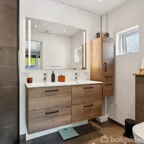 Velkommen til en indbydende og velindrettet étplansvilla på 125 m², perfekt til den lille familie eller parret, der ønsker en nem og tryg hverdag i rolige omgivelser.Boligen byder på 2 nye badeværelser, 3 gode soveværelser + kontor, fordelt med en moderne, separat forældre/børneafdeling. De to flotte, nyrenoverede badeværelser samt det nye bryggers er udført i stilrene materialer og skaber sammen med et lækkert og lyst køkken/alrum fra 2024 en funktionel og æstetisk ramme i hverdagen. I åben for