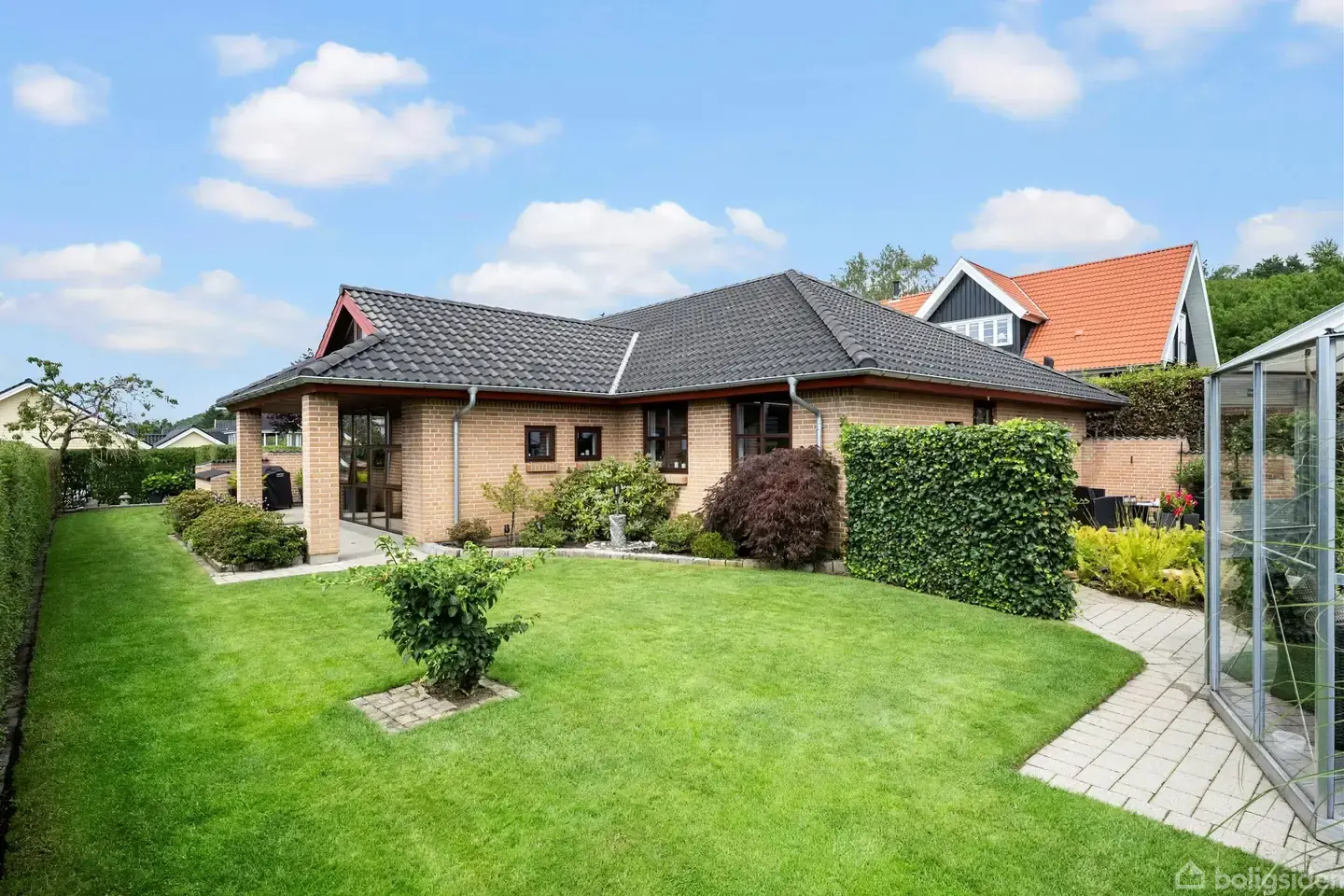 Åbent hus med tilmeldingskrav 12/2 - klik på billede - På en fredelig og lukket villavej finder du denne yderst velholdte og indflytningsklare villa, hvor både ude- og inde miljø fremstår særdeles præsentable. Huset er opført i kvalitetsmaterialer, og har en funktionel og veldisponeret planløsning, der passer perfekt til både børnefamilien og parret, som ønsker god plads og trygge rammer i hverdagen. Du bydes velkommen i huset entré, der også giver adgang til et praktisk og funktionelt bryggers og et rummeligt badeværelse. Der er et dejligt soveværelse med skabsvæg, 2 gode værelser og et kontor/hobbyrum i boligkvalitet. Centralt i huset det indbydende køkken-alrum med loft til kip, som skaber en skøn rumfornemmelse og fungerer som hjemmets naturlige samlingspunkt. Herfra er der direkte udgang til den vestvendte terrasse som indbyder til en hyggelig eftermiddag eller en grillaften med familie og venner. Fra alrummet er der også adgang til den hyggelige stue, der indbyder til afslapning og samvær, og fra stuen er der udgang til en skøn terrasse til morgen og formiddagshyggen. Sælger har inden for de senere år opdateret boligen med flotte nye gulve i stort set hele huset, hvilket understreger det velholdte indtryk. Udenfor venter en helt ugenert og charmerende have med de solrige terrasser, hvor du kan nyde solen fra morgen til aften. Derudover får du et integreret udhus/værksted og en carport med direkte adgang til både hoveddør og udhus – samt en rummelig indkørsel med plads til flere biler. Her får du en bolig, hvor alt er vedligeholdt og velplejet – både ude og inde. En sjælden mulighed i et roligt og attraktivt villakvarter.
