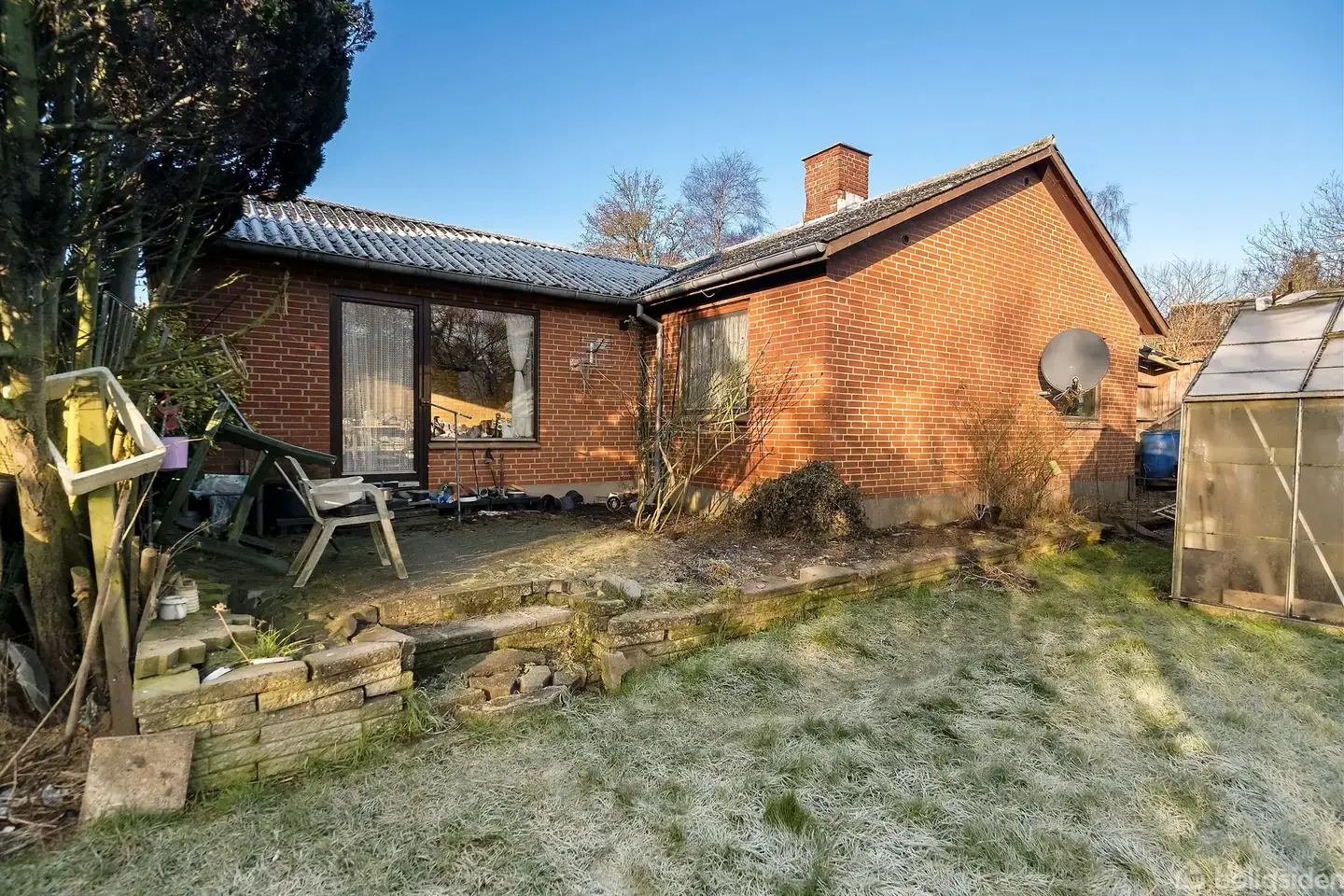Åbent hus med tilmeldingskrav 1/2 - klik på billede - Billig og velbeliggende 1-plans rødstensejendom på 108 kvm. i Føllenslev med skøn udsigt til åbne marker. Ejendommen byder på en praktisk indretning med gang, disponibelt rum, badeværelse med entre/bryggers. Derudover findes en rummelig vinkelstue, et ældre men funktionelt køkken samt to gode værelser. Udendørs får du en overdækket terasse, ideel til sommerens måltider, samt skur, stor garage, drivhus og flere mindre skure med god plads til opbevaring og hobbyaktiviteter. En ejendom med mange muligheder for den prisbevidste køber i rolige omgivelser. Føllenslev er et sted, hvor naturen virkelig får lov at fylde. Området er præget af skønne landskaber, åbne vidder og en ro, man hurtigt falder til i. Her hersker fred og fordragelighed, og det gode naboskab er en naturlig del af hverdagen, hvilket skaber en tryg og imødekommende stemning. Byen egner sig særligt godt til børnefamilier, der ønsker rolige omgivelser og plads til nærvær, uden byens tempo og larm. I Føllenslev får man noget sjældent - stilhed, natur og et stærkt lokalt fællesskab.