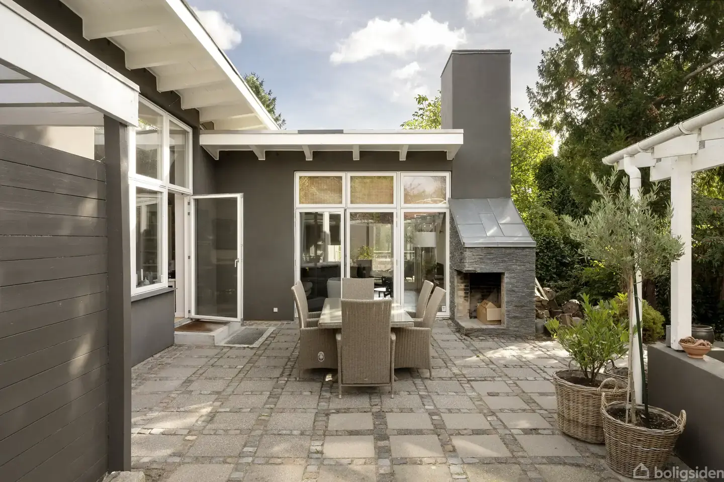 Himmelkig og havelykke Det er ikke uden grund, at Skovvejskvarteret er et af Gentoftes mest eftertragtede områder. Mellem Ermelunden, Bernstorffsparken og Hundesømosen snor de eksklusive veje sig med store, frodige grunde og storslåede villaer. Her giver fuglene daglige koncerter, solen synes altid at finde vej mellem trækronerne, og naboerne hilser på hinanden med en stille fornemmelse af at have trukket det lange strå. Det er på toppen – på alle måder. Villaen her er fra 1939 og skiller sig u
