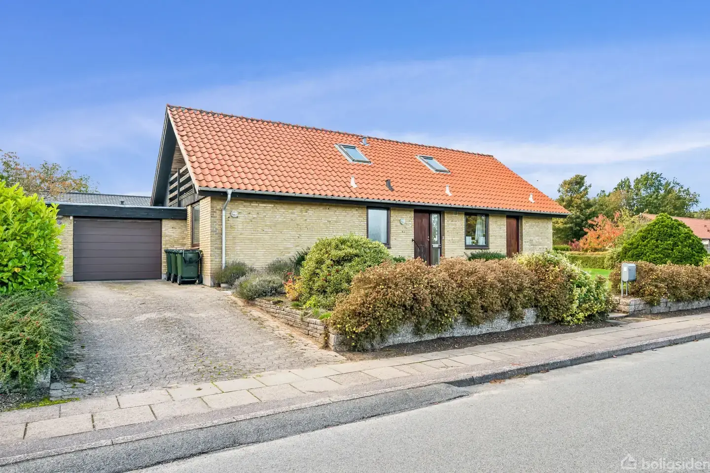 Denne rummelige gulstensvilla med røde vingetagsten ligger helt centralt i Hornslet - med kort afstand til alt, hvad du og familien har brug for i hverdagen. Herfra når du både skole, daginstitutioner, sportshal, biograf, letbane og byens mange indkøbsmuligheder på få minutter.Facaden står med gule mursten, rødt tegltag og mørke gavlpartier, der tilsammen giver et klassisk og harmonisk udtryk. Boligen byder på hele 220 m² fordelt på to etager og rummer masser af plads til den pladskrævende familie. I stueplan findes et lyst køkken med tilhørende bryggers og to stuer med flotte bøgeparketgulve. Terrassedøren åbner ud til en skøn, delvist afskærmet sydvestvendt terrasse, hvor solen kan nydes det meste af dagen. Herfra er der adgang til den pæne og ugenerede have med god plads til leg og udeliv. Herudover rummer etagen to værelser, et badeværelse og et gæstetoilet. På førstesalen venter endnu et badeværelse, to gode værelser - hvoraf det ene har altan med dejlig udsigt - samt et stort multirum med masser af skabe og mange anvendelsesmuligheder som fx legerum, kontor eller hobbyrum. Boligen er opført i klassiske materialer med indvendige vindueskarme i marmor og flotte, tidstypiske skabe, der tilfører boligen karakter og sjæl. Der er desuden en garage på 30 m² med god plads til både bil og opbevaring. Alt i alt får du her en solid og original villa, hvor plads, funktionalitet og beliggenhed går op i en højere enhed - midt i Hornslet. Kontakt Berg Halager på 86101010 for en fremvisning.