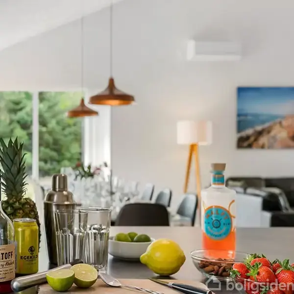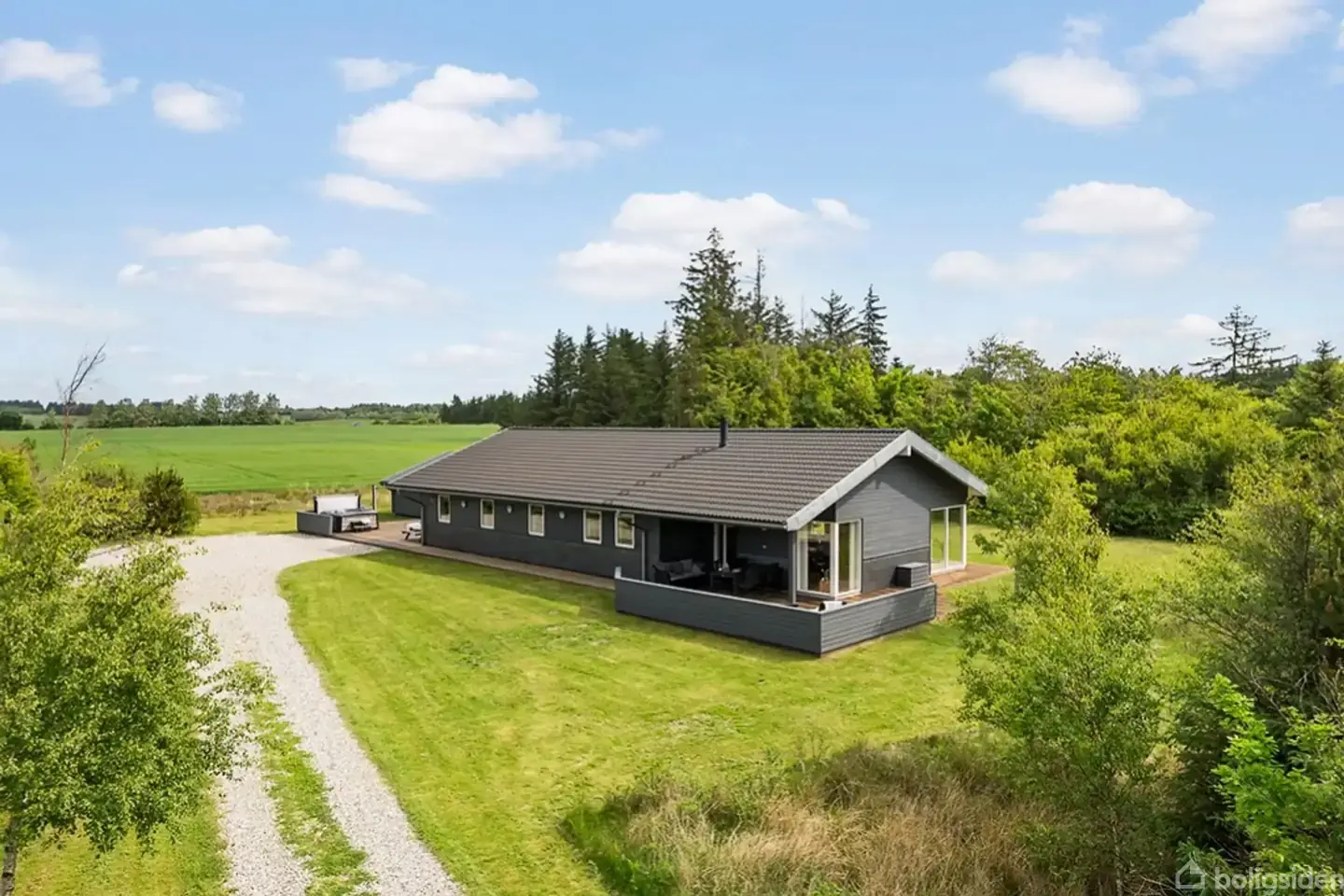 Drømmer I om jeres eget tilflugtssted af en oase, hvor hverdagens travlhed og larm fra byen ikke er til at finde samt et sted hvor fridage og ferier kan nydes i fulde drag? Så er Solmarken 5 et fornemt bud på jeres fremtidige tilflugtssted! Her venter jer et luksuriøst og moderne sommerhus, der emmer af charme, hvor I får lyst til at tilbringe alle fridage hele året rundt - Det er sommerhuset, man simpelthen ikke vil hjem fra. Indenfor følger indtrykket med jer gennem huset, der med sine lyse trægulve, højt til loftet og skønne lysindfald sætter stemningen for ren sommerhusidyl. Fra fordelingsentréen træder I ind i det store køkkenalrum, hvor stue og køkken forenes og skaber skønne rammer for huset hjerterum. Her er der plads til hygge og samvær i alle kroge - hvad end det er til afslapning i sofaen med brændeovnens knitren, fælles madlavning i det lækre åbne køkken eller omkring spisebordet, når den står på brætspilsaften. Sommerhuset byder på intet mindre end 4 værelser, et aktivitetsrum med soveplads og en stor hems samt 2 lækre badeværelser, hvor der på det ene er dobbelt brusekabine, spabad og infrarød sauna. Ydermere, byder huset på et anneks, hvor overnattede gæster kan få sin egen lille feriebolig, som byder på eget køkken, badeværelse, soverum samt opholdsstue. Udendørs er hele huset omkranset af terrasse. På den måde er I altså sikret solkroge hele dagen lang, når sommeren har meldt sin ankomst. Dertil finder I bålplads, udendørsspa og legeplads på grunden, hvor man lige kunne forstille sig at bruge de lune sommeraftener rundt om bålet til grillet skumfiduser. Dette skønne hus er beliggende med kort afstand til Saltum Strand, indkøb, gode vandrestier osv. Det tar kun 5 minutter at køre til Fårup Sommerland. Der er også et skur til redskaber, græsslåmaskine, børnenes legetøj mm.