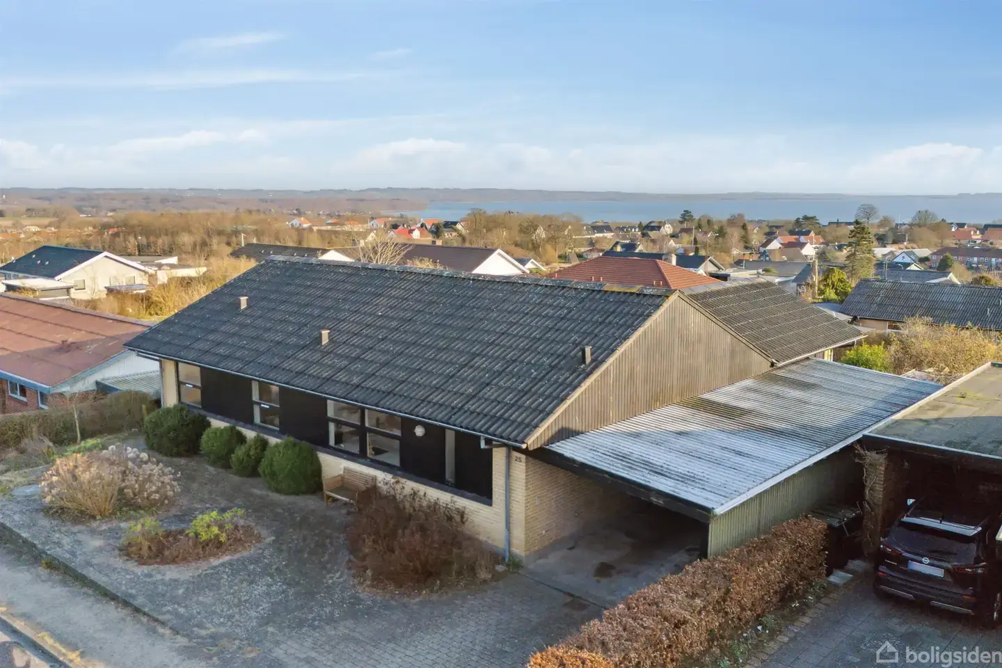 Denne bolig byder på en helt særlig kombination af indflytningsklar stand, smuk udsigt og en planløsning, der udnytter både plads og niveauer optimalt. Fra både opholdsrum og terrasser kan du nyde den flotte udsigt over landskabet og vandet – en udsigt, der giver ro og wow-effekt på samme tid. Boligens naturlige samlingspunkt er de lyse opholdsrum med stue og spisestue i åben forbindelse med køkkenet. Her er der god plads til hverdagsliv og gæster, og de store vinduespartier sikrer et fantastisk lysindfald og udsigt fra flere vinkler. Fra entréen er der adgang til bryggers samt et badeværelse, hvilket gør hverdagen praktisk og funktionel. Husets værelsesafdeling rummer flere gode værelser med fleksible anvendelsesmuligheder – oplagt til børneværelser, soveværelse, gæsteværelse eller hjemmearbejde. Hertil kommer endnu et badeværelse, som skaber god komfort for både familie og gæster. Boligen rummer desuden et kontor samt disponible rum, der kan anvendes til opbevaring, hobby eller værksted. Planløsningen giver mulighed for både fællesskab og privatliv og gør huset velegnet til flere livsfaser. De store terrassearealer er placeret på forskellige niveauer og omkring huset, så solen og udsigten kan nydes dagen igennem. Her er der rig mulighed for at skabe hyggelige uderum med udsigten som det naturlige omdrejningspunkt. En bolig, der skal opleves – ikke kun for sin planløsning og funktionalitet, men for udsigten, som ganske enkelt er noget ud over det sædvanlige.