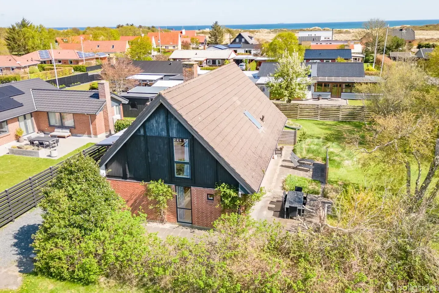 Drømmer du om at bo tæt på havet, i rolige omgivelser og med moderne komfort? Så er denne skønne ejendom noget for dig! Beliggende på en fredelig, blind stikvej i Ålbæk, får du her en indflytningsklar bolig med masser af charme og en dejlig beliggenhed – perfekt som helårshus eller sommerresidens. Beliggenhed og omgivelser Huset ligger kun få hundrede meter fra en børnevenlig badestrand og naturskønne områder – ideelt for både afslapning og udendørsaktiviteter. Samtidig har du kun 700 meter til dagligvareindkøb i den lokale Rema 1000 og Spar. Skole og daginstitutioner ligger også i kort afstand, hvilket gør området særligt attraktivt for børnefamilier. Moderniseret og energioptimeret Ejendommen er løbende vedligeholdt og opgraderet. I 2021 blev der installeret en luft-til-vand varmepumpe, og i 2023 er flere døre og vinduer udskiftet, hvilket bidrager til lavere varmeudgifter og øget komfort. Indretning Boligen byder på hele 160 m² veludnyttet bolig fordelt over to etager: Indenfor mødes du af en indbydende entré med god skabsplads og trappe til første sal. Stueplan byder desuden på et pænt badeværelse med bruseniche og gulvvarme, et praktisk bryggers med vaskemaskine og skydedørsskabe samt varmepumpenhed, og et lyst, velindrettet køkken med god spiseplads. Herfra er der direkte udgang til den sydvendte terrasse og den hyggelige have. I køkken-alrummet skaber en flot Rais pejseindsats både hygge og varme. Videre i stueplan finder du en fordelingsgang, et soveværelse med indbyggede skabe samt to yderligere værelser, hvoraf det ene også har skab. På førstesalen ligger et rummeligt soveværelse med skabe og fransk altan, endnu et badeværelse med bruseniche samt en stor og lys stue med flot udsigt til klitterne og kig til havet. Fra stuen er der udgang til en skøn svalegang, hvor du kan nyde både solopgangen og det åbne vue over området og klitlandskabet. Grund og udhus Grunden er på 882 m² med god plads til leg, afslapning og udendørsliv. Desuden medfølger et praktisk værksted/udhus til opbevaring eller hobbyprojekter. Kort sagt: En skøn og velholdt bolig med strand, natur og byliv lige i nærheden – klar til at danne rammen om nye minder, hvad enten det er som helårsbolig eller fritidshus.