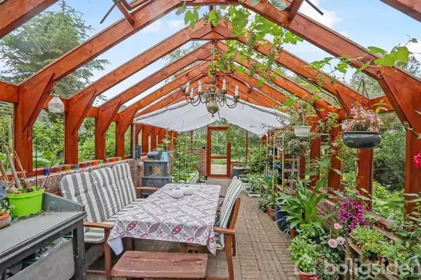 UNIKT BJÆLKEHUS I CANADISK BYGGESTIL· Kan benyttes som både fritidsbolig og helårsbolig· Estimeret lejeindtægt på kr. 139.661 via Sol og Strand· Helt unikt og harmonisk bjælkehus· Indbydende indretning med store lækre rum· Flot anlagt have med dejligt orangeri · Kun få minutters kørsel til strand, hav og Fårup SommerlandUnikt bjælkehus i canadisk byggestilDette helt unikke bjælkehus i canadisk byggestil skiller sig ud med sine karakteristiske bjælker både udvendigt og indvendigt, hvilket giver b