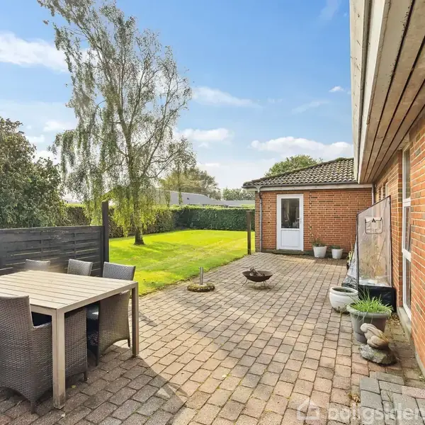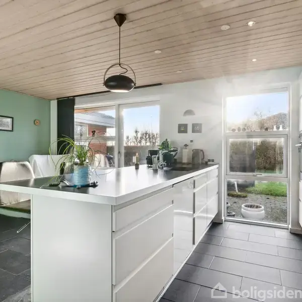 Fousing ligger kun 6 km fra Struer og her finder du netop nu denne villa med god indretning, stor garage, dejlig grund med masser af muligheder for hyggelige uderum og en stor syd-øst vendt terrasse. Du får her en villa med en moderne indretning: * køkken-/alrum med klinker og gulvvarme og med dør til terrassen * stor vinkelstue med franske døre fra alrummet * børne afdeling med 2 værelser og badeværelse * forældre afdeling indeholdende soveværelse med god skabsplads, badeværelse med kar og brus, samt værelse/kontor * bryggers i sammenhæng med køkkenet fuldender det funktionelle indtryk Garagen er på hele 58 kvm og med elport, ny isolering og fremstår i samme stil som hovedhuset med afvalmede gavle og murstens facader. Der er gulvvarme i køkken, badeværelser og bryggers, trælofter, vinduer blev delvist fornyet i 2010. Køkkenet er også skiftet til det nuværende udtryk. Husets opvarmning er suppleret med en pille brændeovn, som er placeret i stuen og fordeler varme til det meste af huset. Er du samtidigt til rolig beliggenhed på stille villa vej, være en del af et aktivt landsbymiljø, have kort afstand til naturen, bla. Klosterheden med MTB spor og uanede muligheder for vandre- og naturoplevelser, samt ikke mindst kort afstand til Asp med købmand, skole og daginstitutioner - så er det måske tid til, at bestille en fremvisning hos BoligOne. Sagde vi iøvrigt, at der er skolebus nærmest lige til døren og Holstebro motorvejen nås på få minutter? Velkommen på Solvang 10.