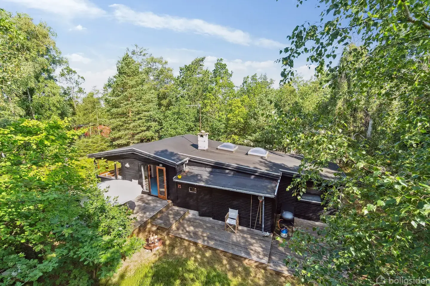 På Solvej 19 i Vig finder du dette stemningsfulde sommerhus, der ligger ugeneret midt i naturen på en skøn, grøn grund omgivet af høje træer. Her er ro, privatliv og ægte sommerhusstemning – et sted, hvor tempoet automatisk falder, og dagene leves ude såvel som inde.Sommerhuset fremstår klassisk og velholdt med sort træfacade og store vinduespartier, der trækker naturen helt ind i boligen. Indenfor mødes du af en lys og indbydende atmosfære med synlige træflader, lyse vægge og et gennemgående, a