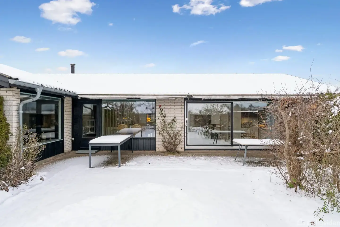 “Til salg”-skiltet er sat foran en velholdt 70’er-villa, der ligger trygt placeret som sidste hus på en lukket vej. Her kan alle, der sætter pris på fred, funktionalitet, og en bolig, der passer til livet, som det er og som det kan blive – finde sig godt til rette. Energiforbruget er lavt, og opgradering fra energimærke C til A2010 er billigt. Bag facaden gemmer der sig 154 veludnyttede kvadratmeter med en planløsning, der giver mening. Uanset om man er solist med hang til albuerum, et par i al