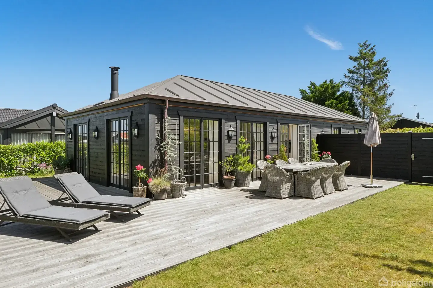Sommerhus og beliggenhed bliver her forenet i en smuk harmoni, der kort sagt skiller sig ud fra mængden. Huset er bygget af By Løth, og det fremgår tydeligt, at man har prioriteret hver eneste detalje. Stilen er tidløs, klassisk og med en snert af luksuriøst badehotel, hvilket er en fin reference til den kystnære placering. Sommerhuset ligger nemlig få skridt fra de prægtige omgivelser ved Nyborg Strand, og tilsvarende er der ikke langt til skov, golfklub eller andre måder at gå på opdagelse i n