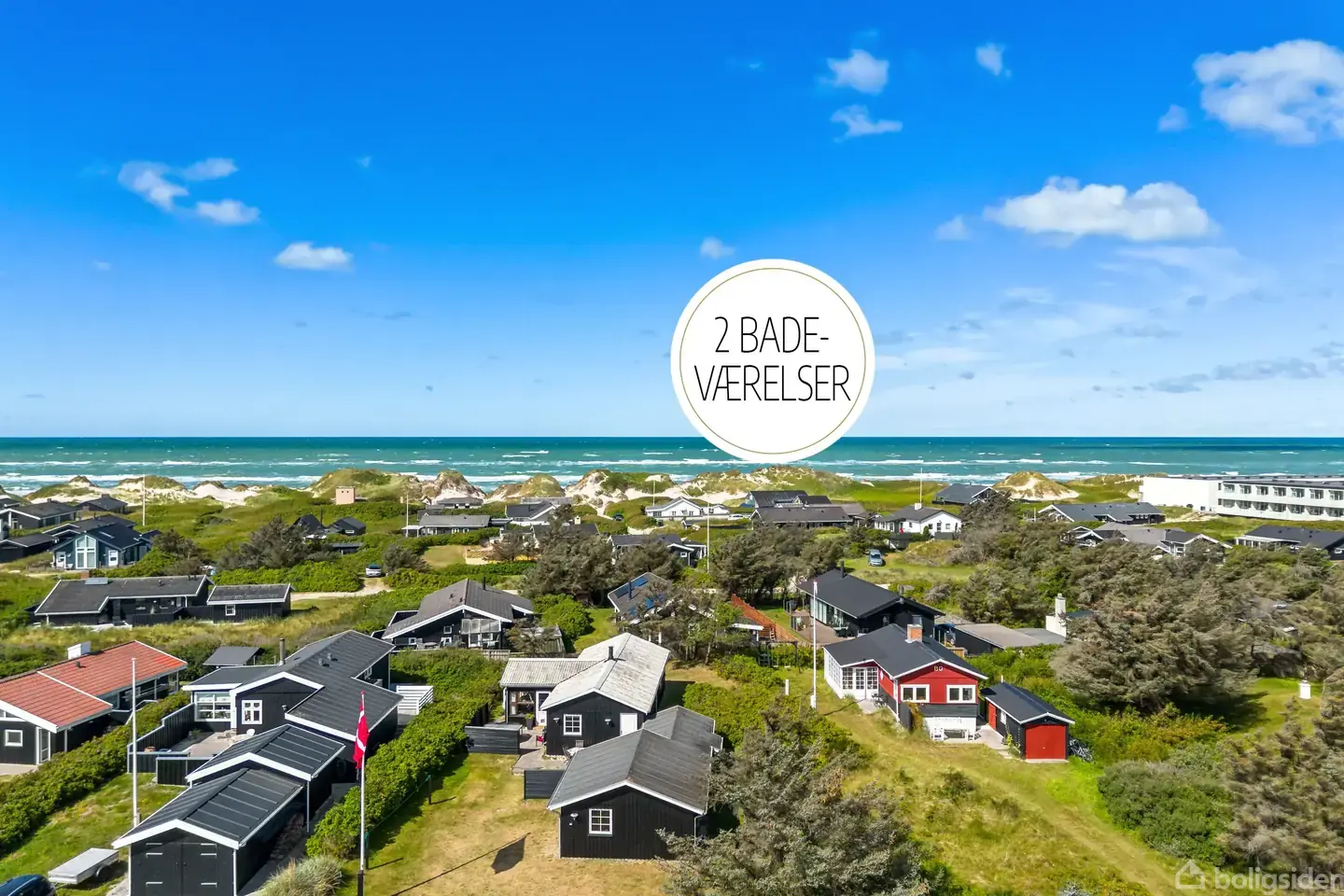 FAMILIENS FRISTED MELLEM STRAND, HAV OG FERIELIVET I BLOKHUS · Et sted, hvor gode ferieminder skabes · Dejligt fritidshus med fokus på samvær · Sovepladser nok til hele familien · Udsigt til klitter og flotte solnedgange · Få minutters gang til både strand og byliv Med sol i ansigtet og Vesterhavets brusen i øregangene – sådan vil I fremover nyde dagene hjemme på træterrassen i rammerne af jeres helt eget skønne fristed. Vi udbyder nu et fritidshus, der er skabt til at samle familien, og så lig