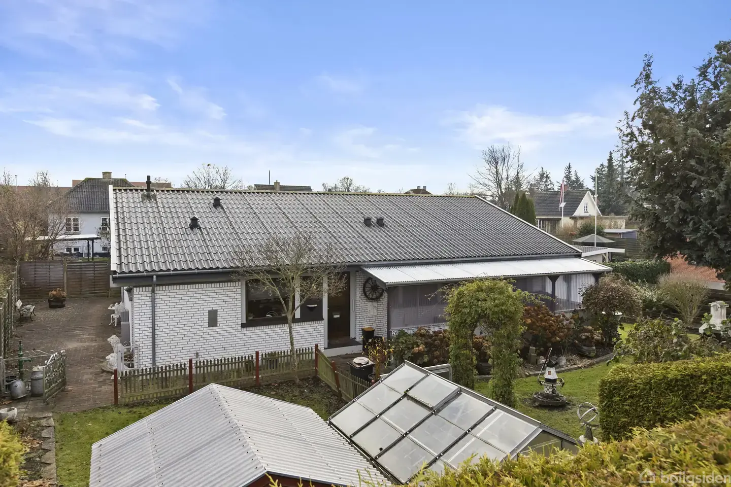 Velholdt villa i ét plan med nyere tagVelkommen til Sorøvej 26, hvor denne villa venter på at danne ramme om en ny familie. Her venter et yderst velholdt hjem, med en hyggelig, indrammet have. Når I ankommer til ejendommen, vil I bemærke indkørslen fra den rolige villavej. Når bilen er parkeret i indkørslen, kan I træde indenfor - enten via hjemmets praktiske bryggers med separat indgang, eller via den lyse entré. Hjemmets hjerte bliver det store, nydelige opholdsrum, hor I får mulighed for at i