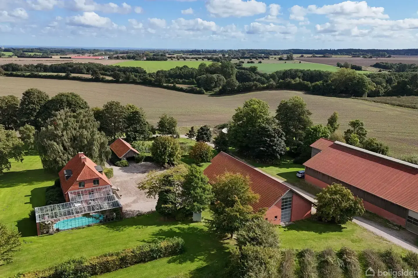 Denne charmerende landejendom er beliggende i rolige, naturskønne omgivelser, lidt udenfor den hyggelige landsby Gislev, der byder på et aktivt foreningsliv og en velassorteret Dagli'Brugs, friskole, børnehave m.m. Ejendommen har en ideel beliggenhed med nem adgang til motorvejen, hvilket betyder, at både Svendborg og Odense kan nås på blot 20 minutter i bil. Grunden udgør cirka 1,3 hektar, hvilket giver rigelig plads til at nyde naturen omkring ejendommen. Selve ejendommens landbrugsjord vil blive udstykket i forbindelse med salget, så der vil være fokus på boligen og den naturskønne grund. Boligen har et samlet boligareal på 216 m² fordelt på to etager, samt en rummelig kælder på 133 m². I stueplan findes en stor og indbydende entré, et rummeligt køkken, tre lyse stuer, et stort værelse samt en ekstra entré, hvor begge entreer har adgang til første sal via trappe. På første sal er der et badeværelse med bruseniche og fire store værelser. Kælderen byder på mange anvendelsesmuligheder med bryggers, flere disponible rum, sauna samt plads til vaskemaskine og opbevaring. Udendørs er der en lækker atriumgård med overdækning og swimmingpool (dog ikke registreret i BBR), hvor sommeren kan nydes i fulde drag. Derudover er der en stor maskinhal opført i gode materialer samt endnu en halv på ca. 700 m2, som giver masser af plads til både hobbyprojekter og opbevaring af større maskiner. Ejendommen er fredeligt beliggende for sig selv, midt i naturen, ad en markvej, hvilket sikrer en privat og rolig atmosfære.