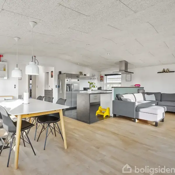 Drømmer du om en 1. plans villa som har en perfekt planløsning med 3 værelser, fantastisk alrum, stort anvendelig bryggers og stort badeværelse, så det nu du skal se med! Her får du en flot villa i flot stil med en tilhørende garage på 42 m². Villaen på de 136 m² er beliggende på en velanrettet grund med en nem og overskurelig have med skønne solbelagte og anvendelige børnearealer. Indvendigt:Lækkert lyst køkken med stor køkken-ø fornemmelse. Alrum i kombination med stue, spise plads og køkken.
