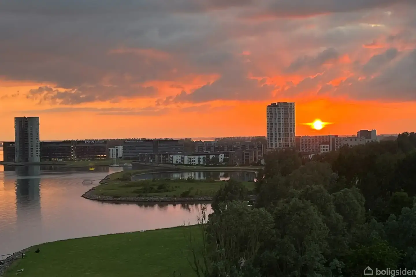 PANORAMAUDSIGT OVER LIMFJORDEN – MODERNE LEJLIGHED PÅ SOLSIDEN AF AALBORG · Du får egen P-plads, elevator og stor solrig terrasse· Meget privat og delvist lukket vestvendt terrasse med udsigt over Egholm, Vestre Lystbådehavn og Lindholm Strandpark· Spektakulær panoramaudsigt over Limfjorden fra første parket · På solsiden og alligevel lige så tæt på Aalborgs byliv · Lækkert køkken-alrum med store vinduespartier og udsigt til vand og by · To rummelige værelser og stort badeværelse med gulvvarme