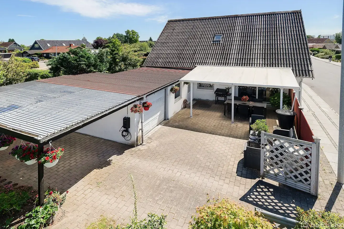 Velkommen til denne villa fra 1932, der byder på et boligareal på hele 153 kvadratmeter. Ejendommen er ideel for dem, der ønsker at sætte deres eget præg på en bolig med mange muligheder. Når du træder ind i huset, mødes du af et praktisk bryggers, renoveret i 2020 og som er udstyret med en vaskesøjle samt rigelig plads til opbevaring. Herfra ledes du videre til det hyggelige køkken, hvor der er indrettet en lille spiseplads – perfekt til de hurtige morgenmåltider eller hyggelige stunder med familien. Fra køkkenet har du direkte adgang til spisestuen, som nyder godt af et fantastisk lysindfald og ligger i forlængelse af den rummelige stue. Stueetagen rummer også en entré, hvorfra der er adgang til et soveværelse samt et badeværelse, der blev renoveret i 2019. På førstesalen finder du en repos, der fører dig videre til to dejlige værelser samt et mindre disponibelt rum og endnu et toilet – ideelt for børnefamilien eller som gæsteværelser. Udendørs kan du nyde den overdækkede terrasse året rundt – perfekt til grillmiddage eller afslapning i skyggen på varme sommerdage. Ejendommen har desuden en større garage, som i dag anvendes til opbevaring, men let kan omdannes efter behov. Derudover findes en carport med plads til bilen samt et skur dedikeret til haveredskaberne. Haven er anlagt med græsplæne og giver mulighed for både leg og afslapning under åben himmel. Beliggenheden er yderst attraktiv med nem adgang til motorvejen samt kort afstand til skole, indkøbsmuligheder og diverse fritidsinteresser – alt sammen inden for rækkevidde uden at gå på kompromis med roen i det hjemlige kvarter.
