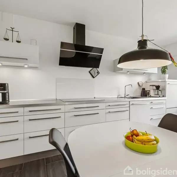 Rummelig ejerlejlighed i to plan Rammerne er lyse, indbydende og løbende opdaterede, og pladsen er ualmindeligt god i denne lejlighed, der fordeler sig over to plan. De i alt fire værelser giver muligheder i indretningen, og derudover venter et par herlige opholdsrum og en vestvendt, overdækket altan. Beliggenheden i en rolig lomme tæt på naturen og gode stisystemer til Herning midtby er endnu et trumfkort. Velkommen til. Køkkenet har gulvvarme og tager sig flot ud med stilrene HTH-elementer