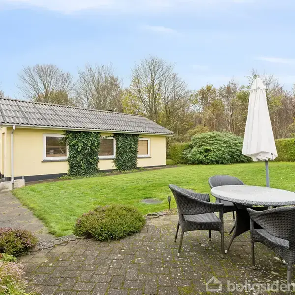 Åbent hus med tilmeldingskrav 3/2 - klik på billede - Beliggende lige uden for Ulfborg finder I denne villa med kort afstand til byens indkøbsmuligheder, skole, daginstitutioner og øvrige faciliteter. Fra adressen er der cykelsti hele vejen ind til Ulfborg, ligesom der er direkte forbindelse mod Vesterhavet og Husby Klitplantage i ca. 13 km afstand. Boligen er indrettet med entré, hvorfra der er adgang til køkken/alrum, der ligger centralt i huset. Fra køkkenet er der adgang til badeværelse med gulvvarme samt til boligens to rummelige værelser. Det ene værelse fungerer som soveværelse med tilhørende walk-in/disponibelt rum. Stuen, med plads til både sofahjørne og spiseplads, har udgang til en udestue, der fungerer som et ekstra opholdsareal. Fra udestuen er der adgang til haven. Haven er anlagt som en lukket have mod syd med terrasseareal. Udenfor er der desuden en garage i god størrelse med plads til hobby eller værkstedsbrug. Bagerst i garagen findes to disponible rum, der giver mulighed for opbevaring eller anden anvendelse. Ejendommen fremstår med en enkel og funktionel planløsning og giver gode anvendelsesmuligheder både inde og ude, herunder særligt via den store garage og de ekstra disponible rum.