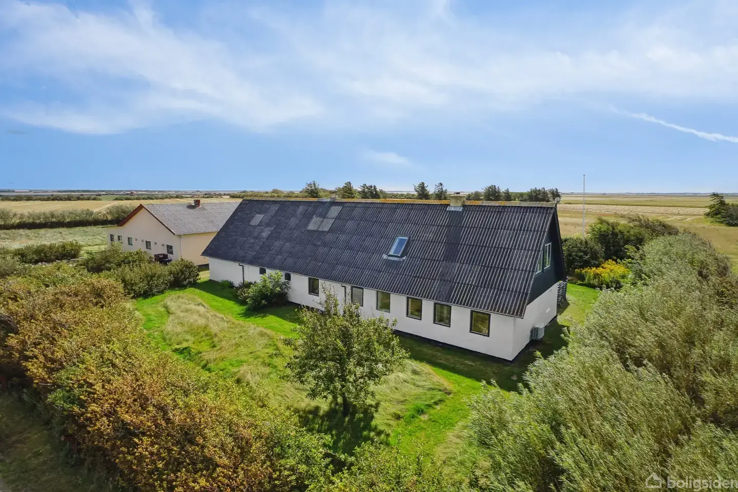 Spændende ejendom midt i den rolige natur med mulighed for flexbolig statusI idylliske omgivelser med fri udsigt over markerne og klitterne har I mulighed for at overtage denne hyggelige villa, hvortil der hører et par udhuse, der tidligere har været brugt til landbrug. Selve boligen er godt udnyttet med ca. 130 kvm. med tre værelser, et badeværelse, et stort opholdsmiljø, et bryggers og et værksted, mens udhusenes mange kvadratmeter virkelig understreger potentialet på ejendommen. Huset ligger