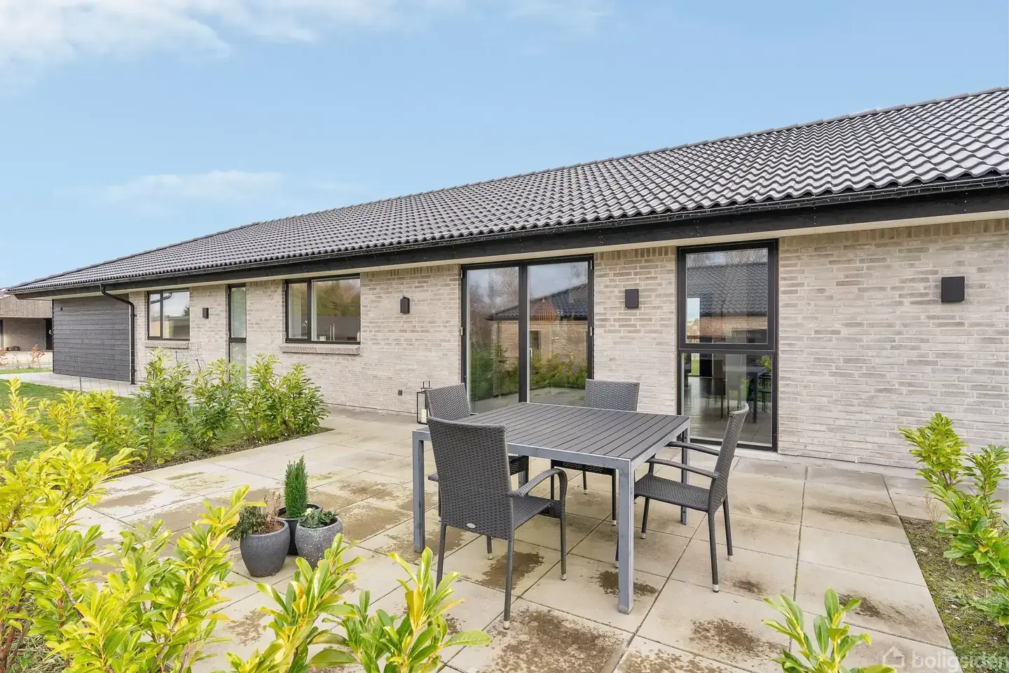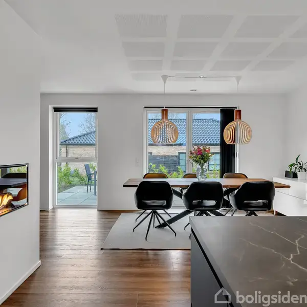 Velkommen til Stadionvej 37: En moderne og stilfuld familiebolig, hvor kvalitet, funktionalitet og smukt design går hånd i hånd. Huset henvender sig til den kvalitetsbevidste køber, der ønsker gode materialer, gennemtænkte løsninger og et hjem, der straks imponerer. Boligens hjerte er det elegante Svanekøkken udført i lækre materialer og med rene, tidløse linjer. Her er plads til både hverdagsmadlavning og større selskaber. Det tilhørende viktualierum er praktisk indrettet og giver optimale opbevaringsmuligheder til forråd og køkkenudstyr. Smukke, røgede egegulve går igen i hele huset og skaber en varm, eksklusiv stemning. I det store opholdsrum kan familien samles omkring en moderne biopejs, der giver både hygge og atmosfære uden besvær eller røg. Huset indeholder to smukke og neutralt indrettede badeværelser, begge udført i kvalitetsmaterialer og med en rolig, moderne æstetik. Forældrebadeværelset byder på både separat bruseniche og et lækkert badekar - perfekt til afslapning. Det andet badeværelse er rummeligt og lige så stilrent, ideelt til børn eller gæster. Med fem lyse og rummelige værelser er der masser af muligheder for både børneværelser, kontor, gæsterum eller hobby. Planløsningen giver fleksibilitet til familier i alle størrelser. Det velindrettede bryggers giver masser af arbejds- og opbevaringsplads og er en uundværlig del af familiens hverdag. Her er der styr på både teknik, vask og ekstra opbevaring. Udendørs finder du en stor og solid carport, der giver god plads til både bil og ekstra opbevaring af cykler, barnevogn eller havemøbler. En praktisk løsning, der gør hverdagen nemmere. Hornslet – en attraktiv by nær Aarhus Ejendommen ligger i hjertet af Hornslet, en af Djurslands mest eftertragtede byer med kort afstand til Aarhus. Hornslet tilbyder alt, hvad man kan ønske sig: god skole, daginstitutioner, idrætsfaciliteter, lækre indkøbsmuligheder, letbane og et aktivt lokalmiljø. Byen er ideel for familier, der ønsker ro, tryghed og et stærkt fællesskab – uden at give afkald på nærhed til storbyen.
