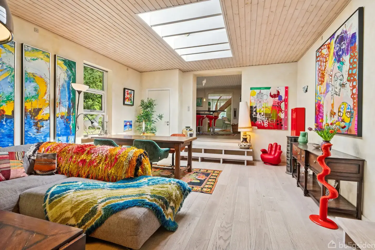 Charmerende villa midt i Hedeland Midt i Hedelands betagende naturlandskab toner denne villa frem med sin gulmalede facade og det blåglaserede tegltag. En allé med grantræer fører jer ned til ejendommen, som i perioden 2002 til 2008 gennemgik en omfattende renovering. Her kan I glæde jer over askeplanker, køkken fra svenske Ballingslöv og gulvvarme i flere af rummene. Foruden villaen følger en ekstra bygning, der åbner op for et væld af muligheder, hvad enten I drømmer om at bo flere generation