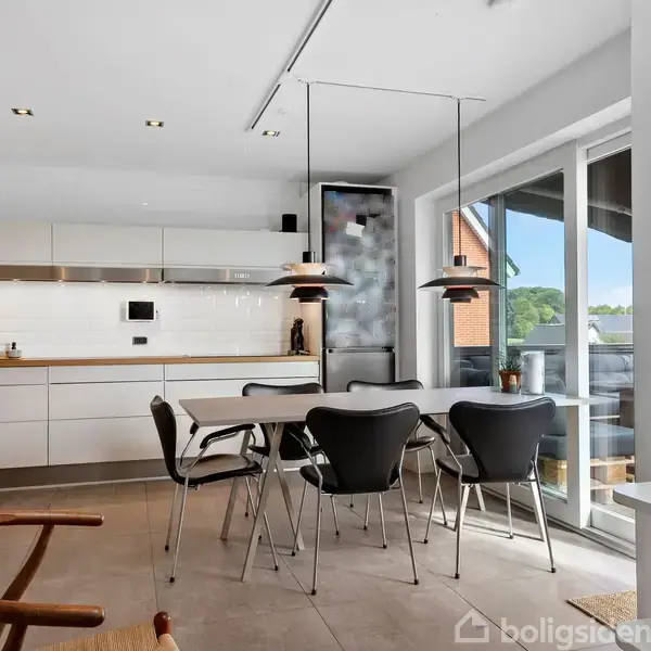 Åbent hus med tilmeldingskrav 3/2 - klik på billede - Allerede ved ankomsten fornemmer man ejendommens kvalitet. Indenfor mødes du af en lys entré, der leder dig videre ind i det rummelige køkken/alrum. Her skaber de store vinduespartier et naturligt samspil mellem inde og ude, og et skønt lysindfald. Fra alrummet er der direkte adgang til terrassen og den velanlagte have, hvilket gør det til et naturligt samlingspunkt for både hverdag og gæster. To gode værelser fuldender denne etage. Førstesalen byder på en opholdsstue med en helt igennem enestående udsigt over Haderslev Fjord. Her kan du nyde livet på vandet samt fjordens skiftende udtryk året rundt. Etagen byder desuden på et værelse og et toilet. Ejendommens kælder er særdeles funktionel og byder på et stilfuldt badeværelse, et praktisk bryggers samt både et stort og et mindre disponibelt rum, som kan indrettes efter behov. Den store plæne indbyder til aktiviteter, mens flere velplacerede terrasser giver mulighed for at nyde udelivet hele dagen. Her finder du både en høj terrasse med udsigt over fjorden samt en overdækket terrasse, perfekt til stemningsfulde aftener. Som en ekstra finesse er der et anneks i haven, oplagt som gæsteafdeling eller kreativt fristed. Hertil kommer både garage og værksted, som fuldender ejendommens mange kvaliteter. Starup er et skønt lokalsamfund med købmand, skole og en masse fritidsaktiviteter, hvor alle føler sig velkomne. Her får du både nærhed til naturen og et aktivt fællesskab. For enden af vejen er Starup Kirke som er beliggende i naturskønne omgivelser, hvor du kan komme i hel kontakt med vandet via bådbroen.