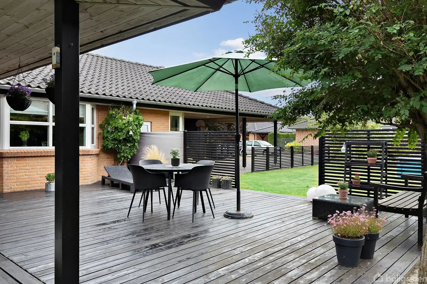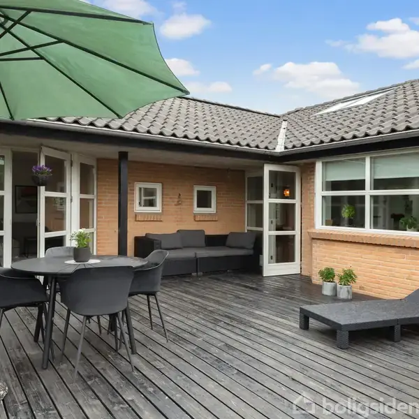 Åbent hus med tilmeldingskrav 2/2 - klik på billede - Velkommen til denne skønne vinkelvilla beliggende på en fredelig og lukket vej i det attraktive Stavtrup. Her får du en veldisponeret og velbygget bolig på 153 m², hvor komfort og stil går hånd i hånd. Huset er udstyret med gennemgående gulvvarme, hvilket sikrer behagelig varme i hele boligen. Det moderne U-køkken i elegant sort er kombineret med flotte, lyse klinker, hvilket skaber en stilfuld og funktionel ramme for madlavning og hyggelige stunder. Det store alrum, hvor det rige lysindfald trænger ned gennem det imponerende ovenlys, inviterer til samvær og afslapning. Den store møbleringsvenlige stue er indrettet med en charmerende glaskarnap, der åbner op mod den sydvestvendte terrasse og haven – perfekt til udendørs hygge, grillfester og afslappende stunder i solen. Forældreafdelingen har egen udgang til have/terrasse og eget badeværelse, hvilket skaber privatliv og komfort. Derudover findes tre gode værelser samt et ekstra badeværelse med brus. En indbydende entre og fordelingsgang leder dig videre ind i boligen, mens det praktiske bryggers med skabe og vaskefaciliteter sikrer en funktionel hverdag. Haven er et sandt paradis med smukke træer, en stor træterrasse mod sydvest samt en dejlig plæne, der indbyder til leg, afslapning og hyggelige stunder. Her er plads til både børn og voksne, og der er gode muligheder for at skabe sine egne hyggekroge. Indkørslen fører til en integreret carport samt et rummeligt redskabsrum, der giver ekstra opbevaringsplads. Denne bolig er en rigtig god mulighed for at bo i et roligt område med masser af plads og godt fællesskab. Kom og oplev det hele – vi glæder os til at vise dig denne fine bolig!