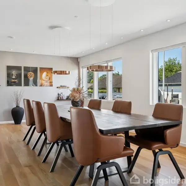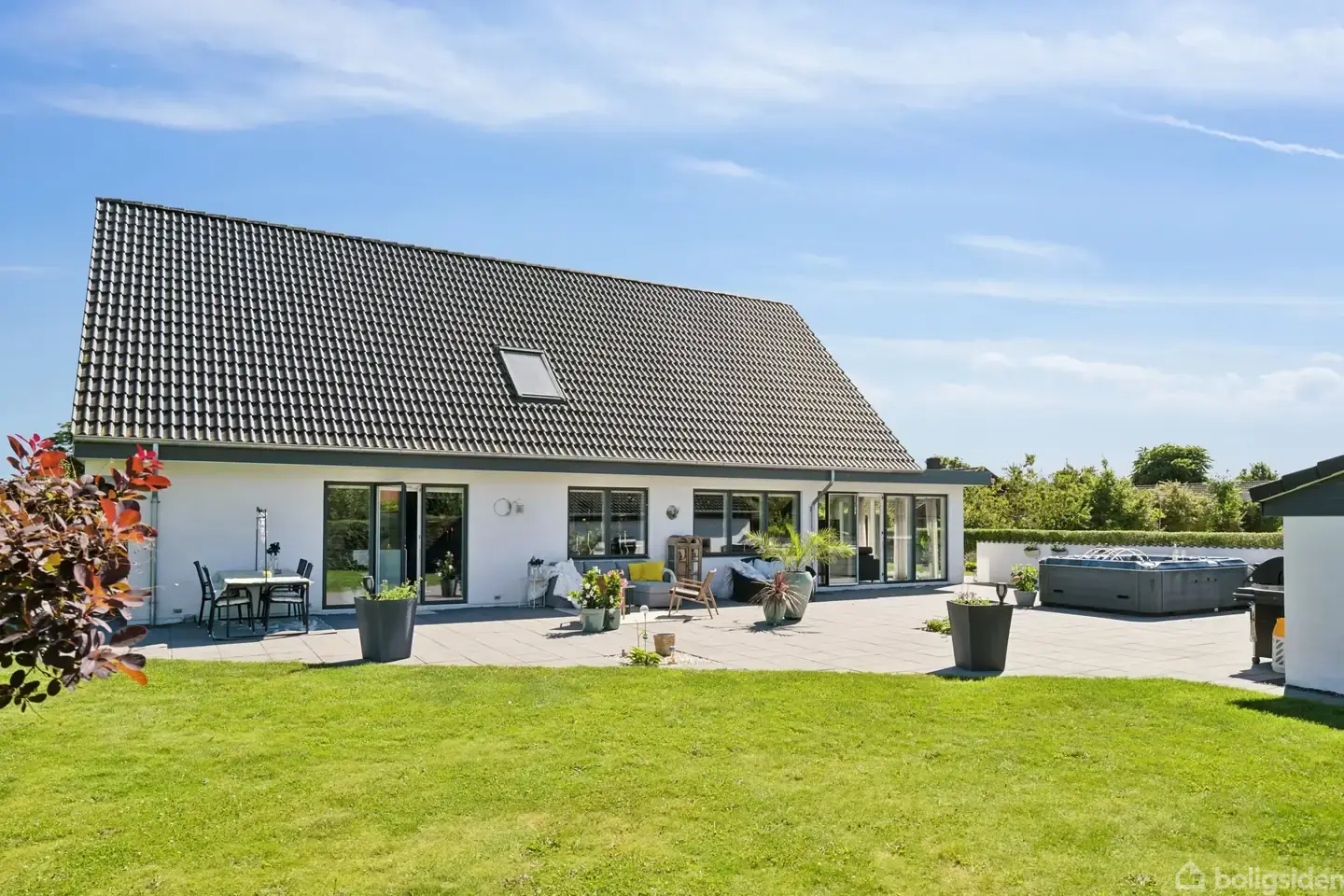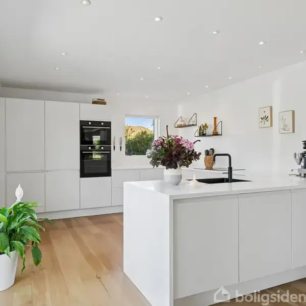 Familiens indflytningsklare favorit Med børnene på bagsædet triller I forventningsfulde ind i indkørslen. Nøglerne er jeres, og fordi hver eneste af de 210 kvadratmeter præsenterer sig helt indflytningsklare, går det stærkt med at komme på plads og tage del i glæderne. Efter at have besluttet, hvem der skal indrette sig hvor, fortsætter I udenfor. Champagnen åbnes på terrassen, og mens de voksne nyder sig en velfortjent skål i de liflige dråber, er de mindste allerede på eventyr i havens grønne