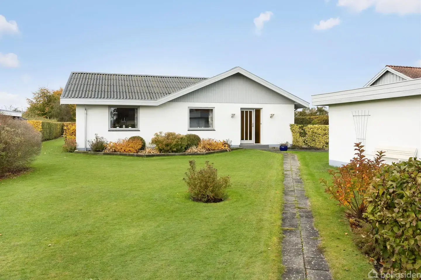 Åbent hus med tilmeldingskrav 2/2 - klik på billede - Ejendommen På Stendyssevej 11 i Hjortshøj finder man denne villa, der fremstår i ældre stand, men med et solidt udgangspunkt for den, der ønsker at sætte sit eget præg. Udenfor venter en stor og solrig have med god plads til både leg, haveprojekter og afslapning. Den store terrasse, som er delvist overdækket, forlænger opholdsrummet og giver mulighed for udeliv i al slags vejr. Derudover rummer ejendommen en garage, hvor bilen kan holde tørt, samt et skur med ekstra opbevaringsplads. Indretning Fra entréen fører en L-formet fordelingsgang til boligens forskellige rum. Her møder man først et badeværelse samt to rummelige værelser, der kan anvendes som soveværelse, kontor eller børneværelse efter behov. For enden af gangen er der udgang til den overdækkede terrasse, hvorfra haven kan nydes i fulde drag. Lige frem fra entréen ligger et praktisk bryggers samt yderligere to værelser, der giver god fleksibilitet i indretningen. Boligens naturlige samlingspunkt er det lyse køkken-alrum, hvor der er plads til både spisebord og sofaafdeling. Herfra er der desuden udgang til terrassen og haven, så ude- og inderum smelter naturligt sammen i sommermånederne. Området Hjortshøj er et attraktivt lokalsamfund nord for Aarhus, kendt for sit stærke fællesskab, grønne omgivelser og nærhed til både by og natur. Fra Stendyssevej er der kort afstand til indkøb, skole, daginstitutioner og idrætsfaciliteter. Området byder på gode stisystemer og grønne arealer, der indbyder til gåture og udendørs aktiviteter. Med let adgang til både bus og letbane er det nemt at pendle til Aarhus, mens man samtidig bor roligt og trygt i hyggelige omgivelser.