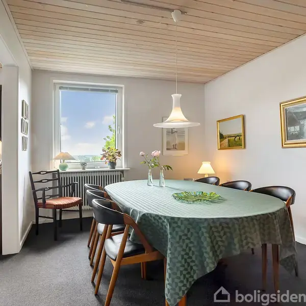 Absolut velholdt og velbeliggende gulstensvilla med udnyttet 1. sal og et samlet boligareal på ialt 183 kvm. Endvidere er der 21 kvm. muret garage og stor sydvendt terrasse med flot udsigt. Beliggende mod ubebyggede arealer på en 728 kvm. stor grund med flot udsigt. Kort afstand til skole, idrætshal, børnehave og motorvejsforbindelse mod Hjørring og Ålborg. Villaen, der er opført i 1963, har eternittag, plast-termovinduer, ludbehandlede trælofter og opvarmes ved naturgas (2016). Indeholder: entré, 2-delt opholdsstue med udgang til sydvendt terrasse, køkken med lille spiseplads, bryggers med fyrrum, lyst badeværelse med bruseniche, klinkegulv og gulvvarme, gang med trappe til 1. sal. 1. sal er indrettet med: opholdsstue med udgang til altan, 2 værelser med faste skabe, soveværelse med skabsvæg, badeværelse med kar og håndbruse. Ekstra værelse vil let kunne indrettes.