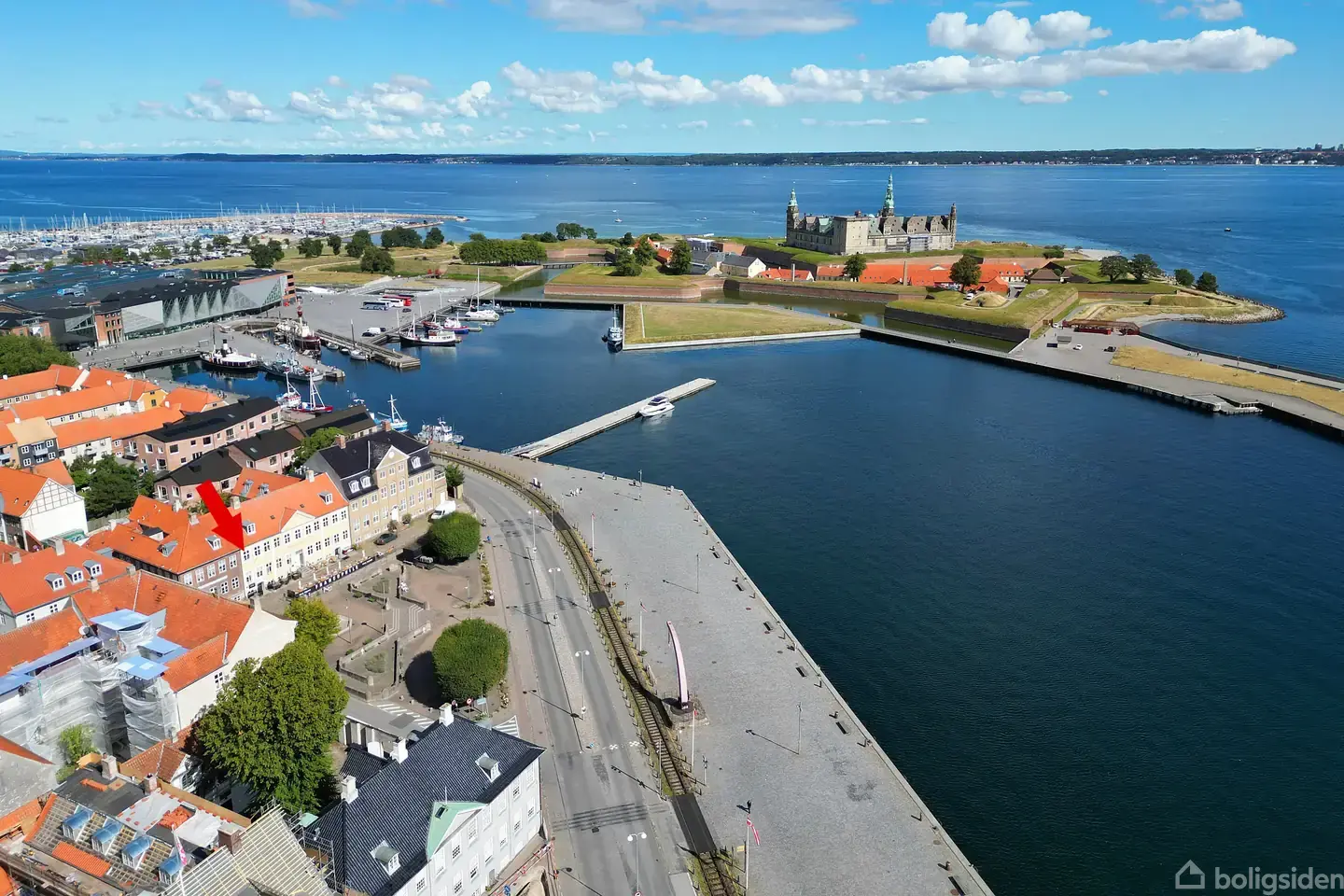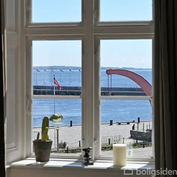 Midt i Helsingør centrums udbydes denne exceptionelt flotte og løbende vedligeholdte liebhaverlejlighed  med fri udsigt til Øresund, Kronborg og det skønne og livlige havnemiljø. Lejligheden er totalrenoveret i midten af 00'erne, med fuld respekt for den oprindelige charme og fremstår fuldstændig indflytningsklar. Her får du hele 153 bolig m2. med høje paneler, bredde planker og en generel fornemmelse af kvalitet. De mange m2 fordeler sig på rummelig entre med god plads til opbevaring, stort