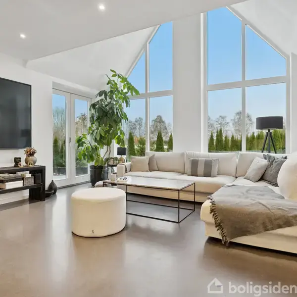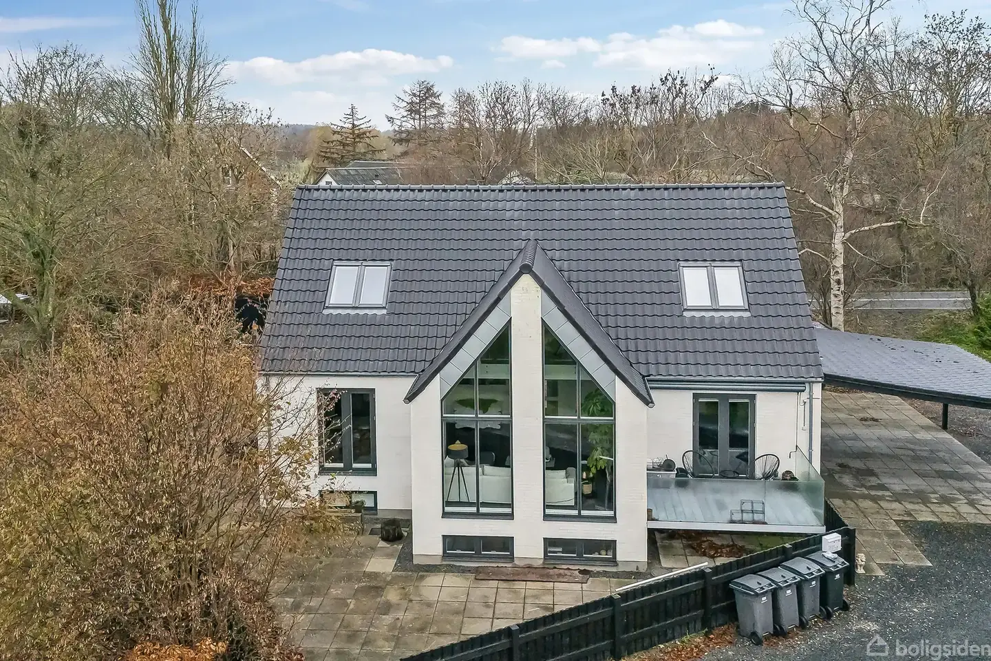 Med sine flotte detaljer og mange kvadratmeter er denne villa i sig selv noget særligt – men det er nu langtfra det eneste, der gør den til lidt af et unikum på boligmarkedet. Huset får nemlig følgeskab af en kæmpe grund, og hele herligheden ligger i naturskønne Bastrup. Ejendommen er fra 2017, og den er opført i mursten med tegltag. Franske altaner, kvist og en markant karnap præger husets ydre, og indenfor er nøgleordene lys, luft og lækre materialer. Boligen er indrettet i forskudte nivea