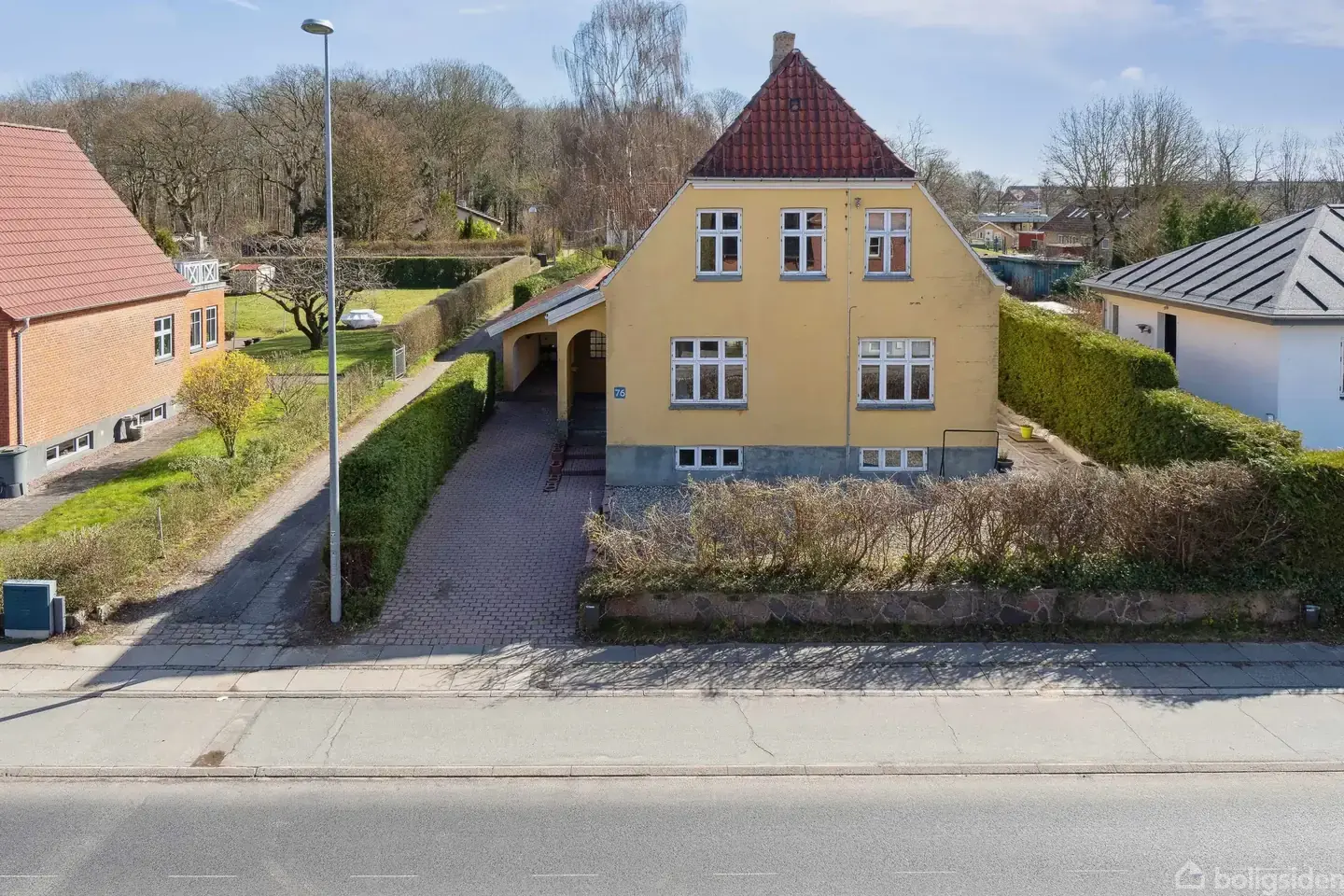 Rummelig ejendom med karakter, have og gode udearealer – ideel som investering eller kombineret bolig og udlejningVilla på 150 m² fra 1931, moderniseret i 2001, placeret på en grund på 761 m² med indkørsel og carport med indbygget udhus. Facaden i gul mursten og rødt tegltag giver huset en tydelig karakter, mens den lange have og hækken omkring grunden sikrer privatliv.Ejendommen fremstår i dag indrettet som tre selvstændige lejemål, hvilket giver en attraktiv mulighed for investorer eller køber