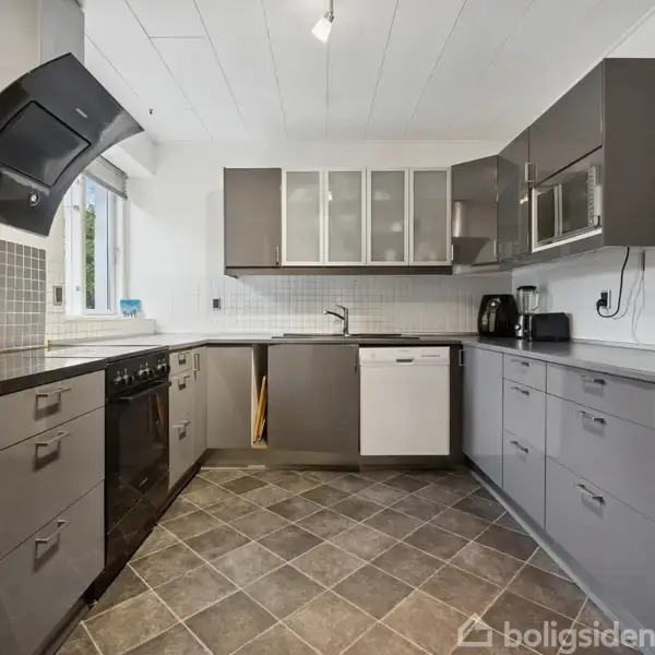 Stor stuelejlighed med eget havestykke i Svendebjergkvarteret  På en rolig vej i et meget hyggeligt kvarter med stenbelagte gader i det attraktive Svendebjergkvarter finder I denne indbydende stuelejlighed, der har eget havestykke. Hjemmet tiltaler både parret og den lille familie, som kan se frem til tre gode værelser, et badeværelse, et køkken og en stor stue, hvorfra der er udgang til den dejlige terrasse, haven og skuret. Som bonus bor I også tæt på alle hverdagens fornødenheder.  Køkkenet p