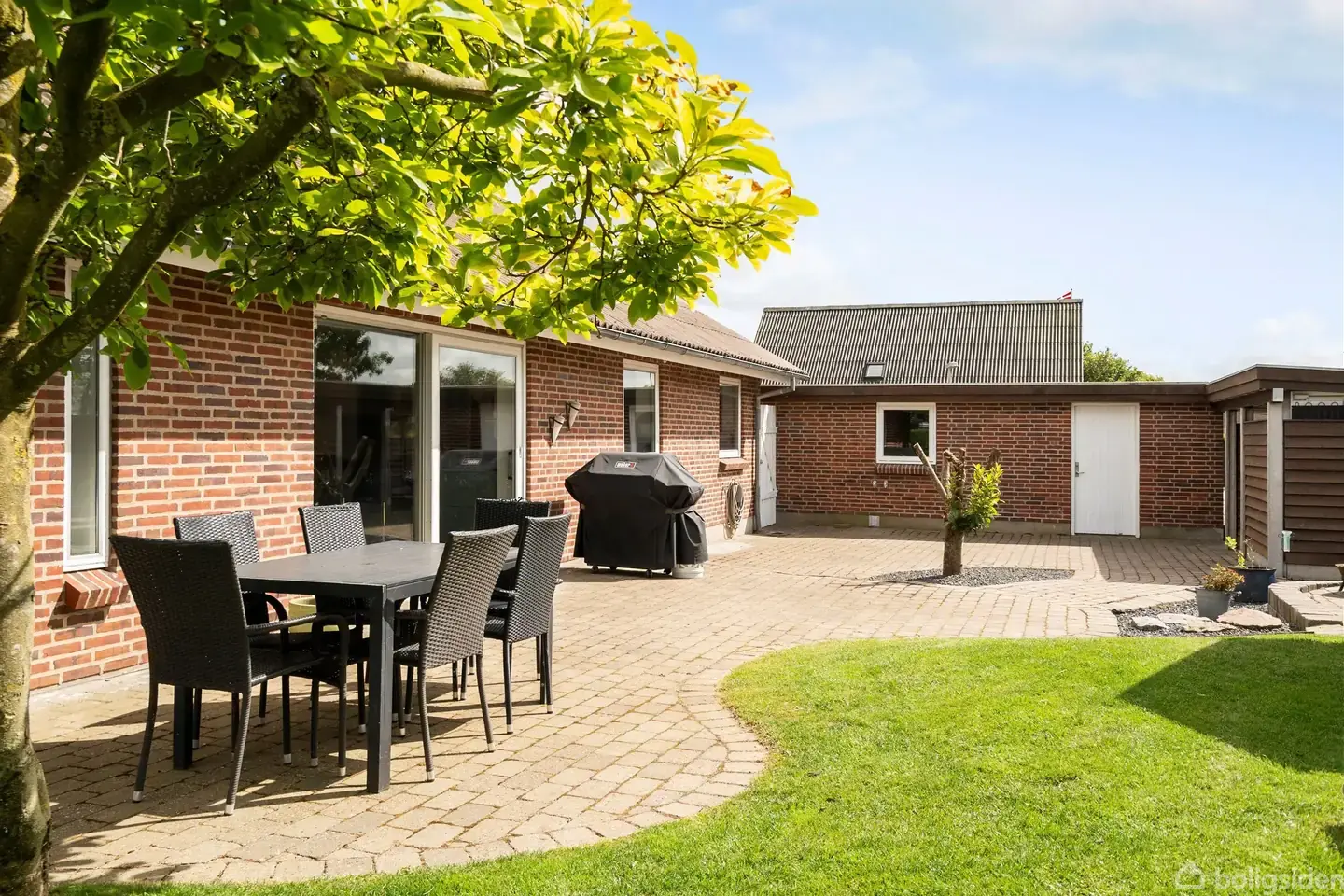 Åbent hus med tilmeldingskrav 3/2 - klik på billede - Velkommen til Stentofterne 160 – en skøn og rummelig etplansvilla på 144 kvadratmeter, opført i 1984 og flot moderniseret. Ejendommen er ideelt placeret i et lukket og børnevenligt villakvarter, hvor trygge stisystemer fører dig direkte til både skole, institutioner, fritidsaktiviteter og dagligvareindkøb. Når du træder ind ad døren, mødes du af et flot, nyt bryggers med god plads og moderne materialer, som straks sætter tonen for resten af boligen. Herfra ledes du videre ind i et stort og åbent køkken/alrum, som er hjertet i hjemmet. Det stilrene køkken er fra Tvis og fremstår med moderne løsninger og lækre detaljer. Det åbne rum giver en naturlig forbindelse til både spiseområdet og opholdsstuen, hvor et flot lysindfald fra de store vinduespartier skaber en varm og indbydende atmosfære. Herfra er der direkte udgang til en stor og solrig terrasse – et perfekt sted at samle familie og venner på lune sommeraftener. Indretningen er gennemtænkt og tilpasset den moderne families behov. I den ene ende af huset findes en separat børneafdeling med to rummelige værelser, som deles om et badeværelse placeret imellem – en praktisk og eftertragtet løsning til både børn og teenagere. I modsatte ende ligger forældreafdelingen med soveværelse, eget badeværelse og et tilstødende værelse, som i dag fungerer som walk-in closet, men lige så nemt kan benyttes som kontor, gæsteværelse eller babyværelse. Hele huset er flot moderniseret med nye lofter, gulve og døre. Der er gulvvarme i både køkken og stue, og et moderne Genvex-anlæg sørger for et sundt og behageligt indeklima året rundt. El-installationerne er opdateret, og i soklen under køkkenet er der installeret en indbygget støvsugerrobot med gulvvask – en diskret, men genial løsning til den travle hverdag. Udenfor venter en velholdt og nem have med rigelig plads til både leg og afslapning. På terrassen under træet kan man nyde morgenkaffen i fred, mens den åbne græsplæne indbyder til fodbold, trampolin og udeliv. Haven ligger ugeneret og i direkte forbindelse til områdets trygge stisystemer, hvilket gør det oplagt for børnefamilier. Til huset hører desuden en stor garage, carport og et praktisk cykelskur. En del af facaden er fuget om, og helhedsindtrykket er, at her er tale om en ejendom, som er passet godt på og løbende forbedret med øje for både funktion og æstetik. Denne villa er noget helt særligt og bør opleves. Her får du ikke bare en bolig – du får et hjem, der er klar til at danne ramme om mange nye minder. Vi glæder os til at vise dig rundt på Stentofterne 160.