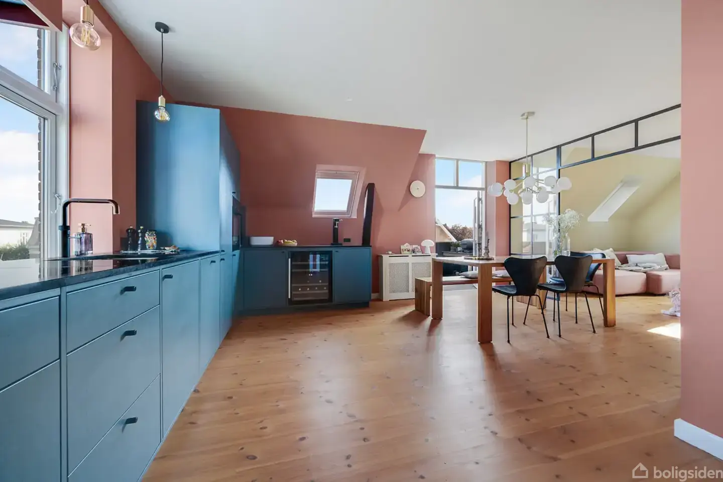 Velkommen til en villalejlighed, der rummer alt det, man drømmer om, når man gerne vil bo i Hellerup med både luft, lys og en have, der faktisk kan bruges. Her får du din helt egen indgang, så det føles mere som et hus end en lejlighed. Fra køkken/alrummet – der er stort, lyst og med plads til det lange spisebord – er der direkte udgang til en solrig terrasse. Her er det oplagt at stille grillen og nyde de lune aftener. Køkkenet er i øvrigt et af de rum, hvor man kan mærke, at her samles man nat