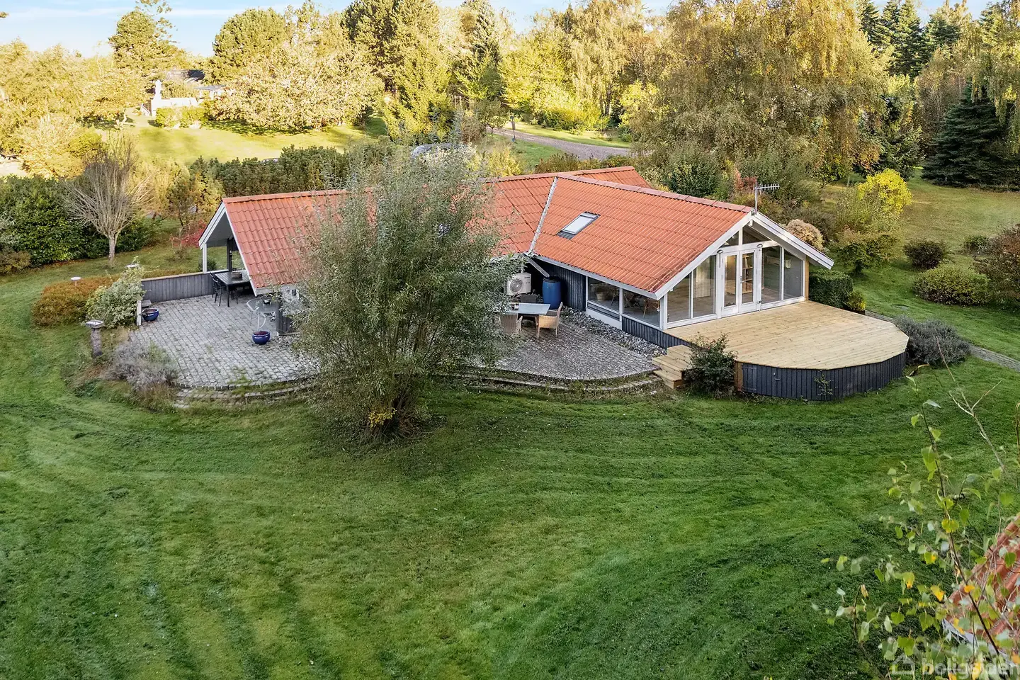 Skønt helårsanvendeligt fritidshus med flere terrasser og gæsteanneks i fredelige Ordrup