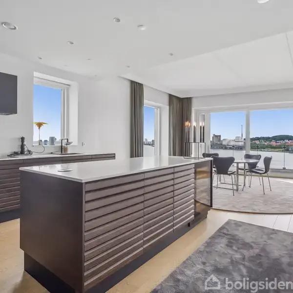 Eksklusiv liebhaverlejlighed i Aalborgs nye stjernekvarter – en perfekt kombination af luksus og beliggenhedLiebhaverlejlighed i første række ud mod fjorden Stor terrasse med udsigt Egen p-plads i p-kælder og tremmerumEget lukket stort kælderrum - tilkøbt af sælgerEnestående kombination af luksus og beliggenhed Beliggende i første parket ud mod vandet, hvor fjord og by mødes i det eksklusive nye Stjernekvarter på Aalborg Havnefront, finder du denne liebhaverlejlighed i de eftertragtede ”V-husen