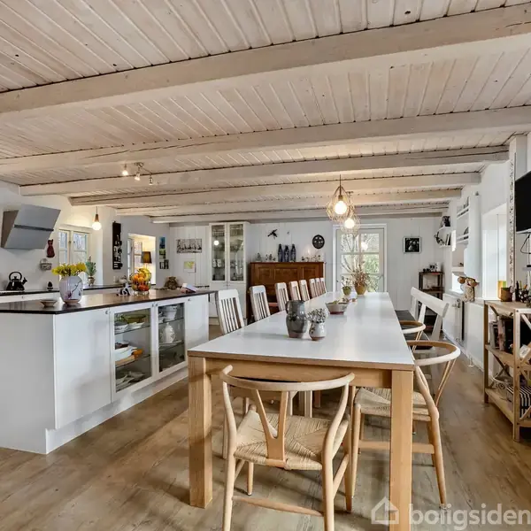 Drømmer du om masser af plads både inde og ude, fredelige omgivelser og samtidig kort afstand til byen? Så er Stokholmvej 39 et oplagt valg. Ejendommen er beliggende i naturskønne, landlige omgivelser blot 5 minutters kørsel nord for Sindal og byder på hele 260 m² veludnyttet boligareal, perfekt til den pladskrævende familie. Boligen indeholder en indbydende entré og et stort badeværelse med gulvvarme. Herfra åbner hjemmet sig op mod en rummelig og hyggelig tv-stue med brændeovn samt et lækkert Invita-køkken, opdateret i 2015. Køkkenet er både funktionelt og indbydende med god arbejdsplads og spiseområde, hvor hele familien nemt kan samles. Der er i alt 7 værelser, hvoraf to i dag er lagt sammen til ét stort rum – dette kan nemt genetableres, hvis behovet opstår. Tæt på soveværelset finder du boligens andet badeværelse, hvilket er en stor fordel i den travle hverdag. Boligen er via et gangareal adskilt fra den store garage med rigtig god loftshøjde, hvor der er direkte adgang til huset. Fra garagen er der adgang til et stort udhus, ideelt som værksted, hobbyrum eller ekstra opbevaring. Til ejendommen hører en imponerende grund på 8.420 m², hvor udelivet virkelig kan nydes. Her er højbede, frugttræer og masser af plads til leg, boldspil og afslapning. Derudover er der opført et muret orangeri, hvor du kan dyrke egne vindruer og andre lækkerier – og samtidig nyde solen i læ, selv på blæsende dage. En ejendom med plads til både familieliv, hobbyer og natur – og stadig tæt på byen. Kontakt RealMæglerne Hjørring på tlf. 72 119 114 for en fremvisning.