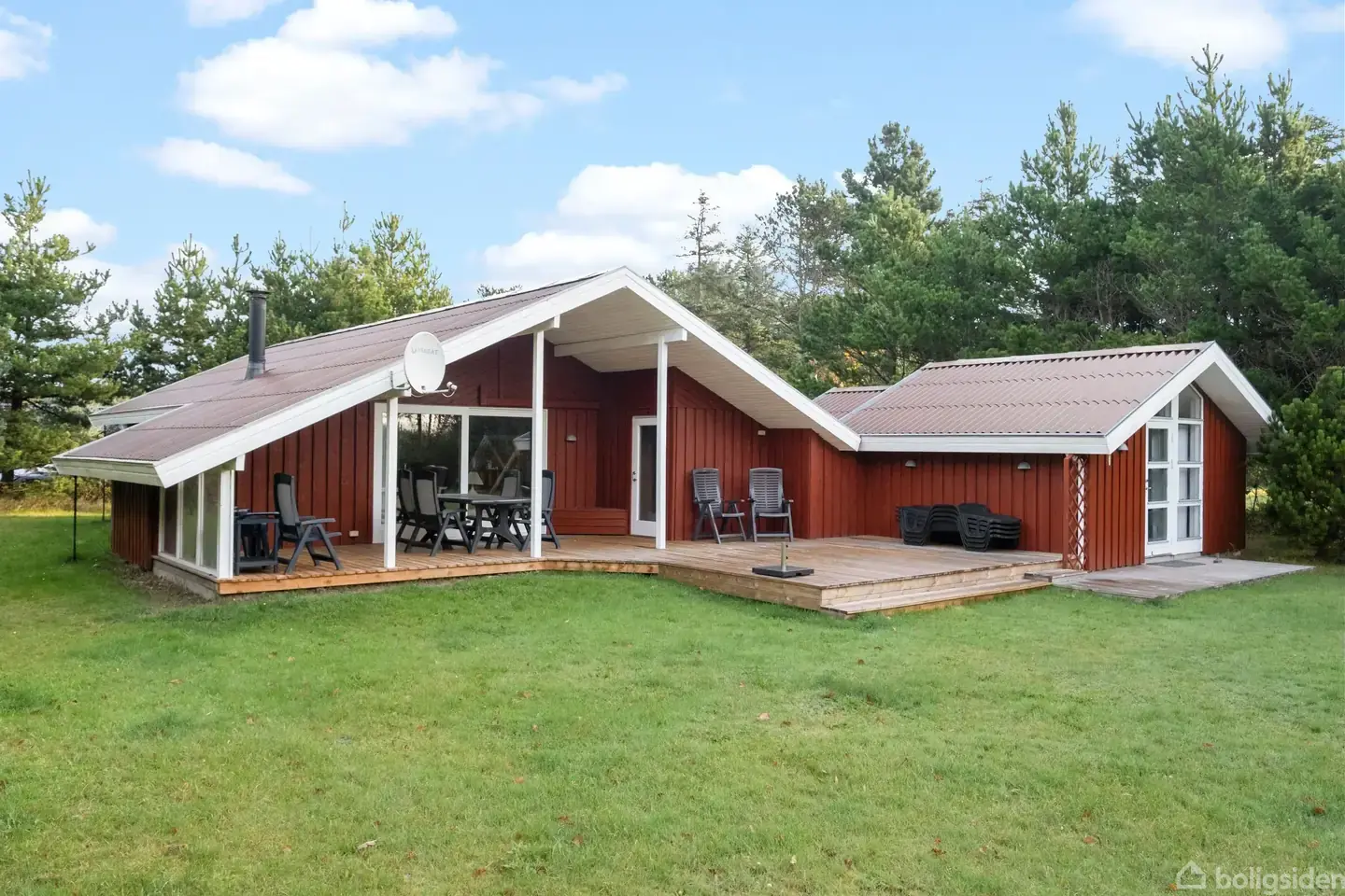 Åbent hus med tilmeldingskrav 7/2 - klik på billede - Velkommen til dette skønne sommerhus i eftertragtede Saltum – en fredelig oase tæt på både Vesterhavet og sommerlandets mange oplevelser. BEMÆRK, nyt tag på hovedhus fra 2024+efterisoleret på loftet(300mm) og nye terrasse ud fra stuen. Huset er velholdt og rummer en lys og indbydende stue med brændeovn, ideel til hyggelige aftener året rundt. Det åbne køkken gør det nemt at være sammen under madlavningen, og efter en lang dag i naturen kan du slappe af i husets spabad. Sommerhuset rummer to gode soveværelser i hovedhuset, mens et ekstra værelse med eget toilet findes i det tilhørende anneks – perfekt til gæster eller teenagere, der ønsker lidt privatliv. . Udenfor venter flere terrasser, hvor solen kan nydes hele dagen, og den store, ugenerede grund giver plads til både leg og ro. Om aftenen kan grillen tændes, og maden nydes under åben himmel i private omgivelser. Rummeligt skur som også indeholder vaskemaskine og tørretumbler. Huset ligger i et roligt sommerhusområde med kort afstand til Saltum Strand, klitlandskaber og skov. Blokhus, med butikker, spisesteder og aktiviteter, er få minutter væk – og børnefamilien vil elske den korte tur til Fårup Sommerland. Et ideelt fritidshus med masser af charme, komfort og potentiale. Udlejes i højsæsonen ud via Feriepartner