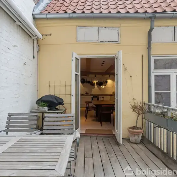 På øverste etage i en klassisk københavnerejendom fra 1780 finder du denne smukke og indflytningsklare lejlighed, hvor historisk charme møder moderne komfort. Lejligheden fremstår renoveret med en gennemtænkt planløsning og en rolig, romantisk stemning midt i storbyen. Til boligen hører en stor, privat tagterrasse. Frederiksstaden er nok Københavns smukkeste bydel, hvor storslået arkitektur og kulturhistoriske monumenter præger stemningen. Her bor du få skridt fra restauranter, caféer og butikker i rigelige mængder, og tæt på hjemmet ligger også Marmorkirken med tilhørende metrostation samt Amalienborg Slot, Kongens Nytorv og Nyhavn. Der er også kort gåafstand til Kongens Have og de mange muligheder i Indre By. Ejendommen ligger tilbagetrukket i en stille baggård med brostensbelægning. Her mærker du tydeligt den historiske atmosfære, samtidig med at du føler dig skærmet fra byens pulserende liv. I lejligheden cementeres det positive førstehåndsindtryk, hvor store, lyse rum med markante loftsbjælker og brede plankegulve tager imod dig. Køkken-alrummet udgør boligens åbne opholdsmiljø, hvor der er masser af plads til at indrette hyggelige sektioner. Køkkenet fremstår moderne og funktionelt, og bemærk brændeovnen, der beriger stemningen yderligere i aftentimerne. Fra alrummet er der udgang til tagterrassen, hvor du kan nyde sommersolen med følelsen af at være helt dig selv. Endelig kan du se frem til at indrette to store værelser og et indbydende badeværelse med bruseniche.