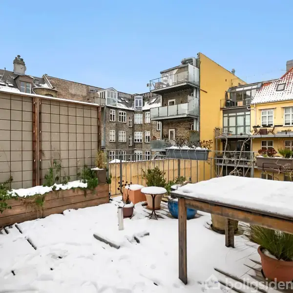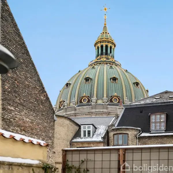 Først den ene vej, og så den anden vej, a tju, atju, a skomagerdreng, bliver der sunget og nyst i børnesangen fra 1800-tallet. Ja, man skulle tro, at teksten handlede om Store Kongensgade den ene vej og Bredgade den anden. De 2 ensrettede parallelgader går ind mod og ud af Indre By. De binder Østerbro sammen med Indre By. Og er der noget, der med adgang til himmerigets porte binder de 2 parallelgader sammen, så er det den bilfri passage med Marmorkirken i Frederiksgade og nedgangen til Metro. 145 år tog det at bygge kirken. Gud har nemlig ikke travlt. Kirken har absolut været værd at vente på, mageløst er det runde og kuppelformede kirkerum inspireret af Pantheon i Rom, alle guders kirke. Udsigt til Marmorkirkens kuppel Lejligheden i ejendommen Store Kongensgade 92D er noget helt særligt. Den ligger som et byhus på 1. og 2. sal inde i en aflåst gård med endnu en trappe direkte op til den private tagterrasse med sol hele dagen. Selv om Marmorkirkens kuppel fylder det meste i udsigten, så er her så stille, at man kan høre fuglene trække vejret. Med 107 m2, 2 soveværelser og ét gæstetoilet er den oplagt som delelejlighed for studerende, men også til den lille familie eller kærester, som gerne vil flytte sammen og kramme hinanden på en af de bedste adresser i København. Alt står snorlige, alt er lige til at flytte ind i. Alt det bedste lige om hjørnet Herfra er alt i København tæt på. Nyboder, de bedste restauranter og trendy butikker ligger lige om hjørnet, det samme gør kulturen med gallerier, Det Kongelige Teater og Skuespilhuset. Byens grønne væresteder som Sankt Annæ Plads, Kongens Have og Kastellet er få minutter væk, og så ligger Nyhavn og Kongens Nytorv en lille kilometer til venstre for hoveddøren.