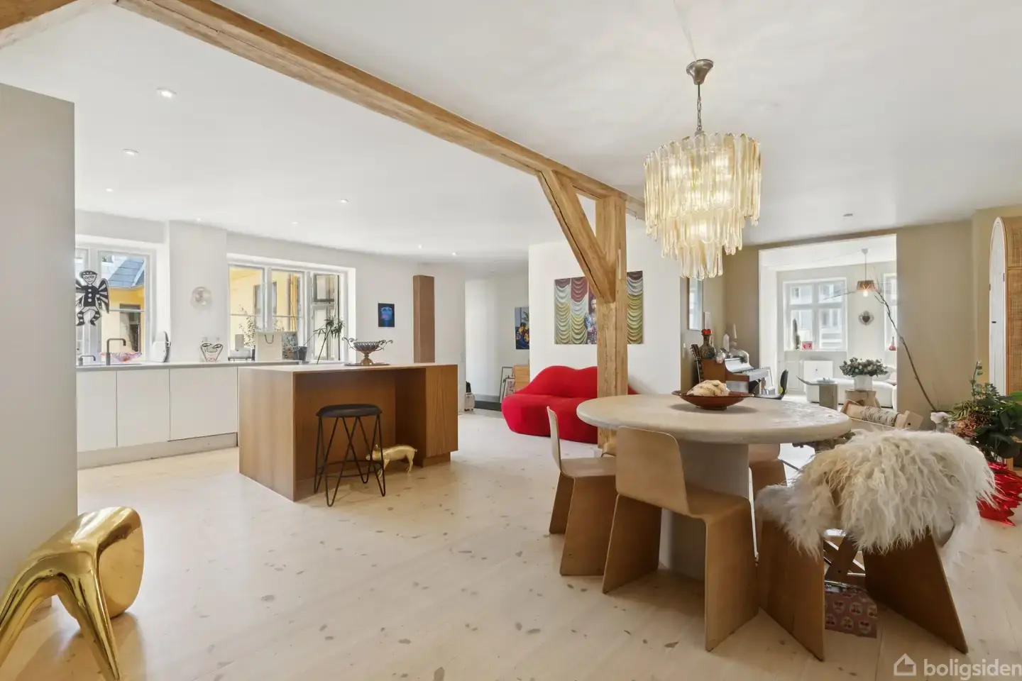 På Store Regnegade 19, 2. th. finder du denne enestående lejlighed på hele 161 m² en sjælden kombination af klassisk københavnerstemning, moderne komfort og fredelige omgivelser midt i byens hjerte.Lejligheden er beliggende i et stille baghus og fremstår med smuk loftshøjde, fritlagte bjælker og hvor mange orinale detaljer er besvaret. Her får du en bolig med sjæl og karakter, der samtidig opfylder alle krav til en moderne hverdag.Planløsningen byder på et stort og åbent køkken-alrum med rigelig