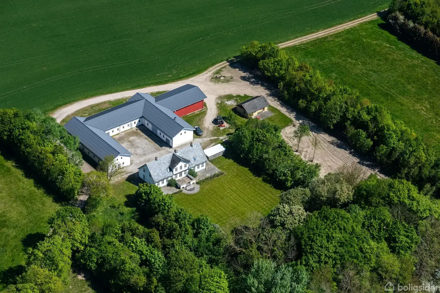Åbent hus med tilmeldingskrav 4/2 - klik på billede - Stor, klassisk landejendom med to boligenheder, markante udlænger og unikke muligheder På Store Valbyvej 114 får du en ejendom, der kombinerer herskabelig charme, funktionelle rammer og sjældent mange kvadratmeter. Her bor du midt i naturen, men stadig tæt på Roskilde, og hele ejendommen fremstår harmonisk og indbydende. Ejendommen rummer mange muligheder for videre udvikling, og sælger har været i positiv dialog med kommunen omkring indretning af tre boligenheder. Hovedhuset – klassisk stemning og store, lyse rum Det første boligareal finder du i hovedhuset, hvor den herskabelige atmosfære straks mærkes - allerede når du træder ind i hallen. De brede plankegulve, stukke og de store sprossede vinduer skaber et elegant, lyst og behageligt hjem. Plantegningen viser en gennemført funktionel indretning med flere stuer en suite, herunder den smukke opholdsstue, hvor lyset strømmer ind fra de høje vinduespartier. Herfra er der adgang til både spisestue og yderligere hyggerum, hvilket giver gode rammer til både familieliv og gæster. Hovedhuset rummer desuden et stort køkken med spiseplads, flere værelser, entré, bryggers samt badeværelser placeret praktisk i forhold til værelsesafdelingen. Hele indretningen er klassisk, hjemlig og særdeles rummelig. Herudover er der i dag indrettet endnu en separat lejlighed i hovedhuset med indgang fra udvendig trappe. Den er indrettet med soveværelse, alrum, køkken og badeværelse. Denne enhed er ikke registreret på BBR-meddelelsen. Anden boligenhed – oplagt til familie, gæster eller udlejning På ejendommen findes en separat boligenhed, der fremstår som en selvstændig bolig med egen indgang. Boligen indeholder køkken/alrum, stort soveværelse samt badeværelse – ideel til voksne børn, bedsteforældre eller som en ekstra lejeindtægt. Udbygninger – enorm fleksibilitet til erhverv, hobby eller dyrehold De store længer omkranser gårdspladsen og giver ejendommen sit flotte, traditionelle udtryk. Udlængerne består af flere staldafsnit, disponible rum, værkstedsområder, depotrum, lagerrum samt garage. De markante bygninger giver plads til alt fra liberalt erhverv, lager eller håndværk til maskiner, heste, hobbyprojekter eller kreative værksteder. Plantegningen viser en tydelig opdeling af rummene, så det er nemt at overskue de mange anvendelsesmuligheder. Grunden – grønne omgivelser og fuld privathed Den omkringliggende grund fremstår både smuk og funktionel. Haven ved hovedhuset er omkranset af gamle træer, der skaber læ og privatliv, mens de åbne markarealer giver en følelse af ro og vidde. Oppefra fremstår ejendommens struktur ekstra tydelig: et smukt, hvidt hovedhus, solide længer, en stor gårdsplads og masser af plads omkring sig – et harmonisk, klassisk landsted. Alt i alt Store Valbyvej 114 er en ejendom, der sjældent udbydes. Her får du to komplette boligenheder, en imponerende mængde udhusplads, herskabelige detaljer og en atmosfære, der kun findes på de bedste landsteder. Perfekt til familien, der vil bo stort og smukt – og til dem, der ønsker plads til erhverv, generationer eller store drømme. Ejendommen sælges for Freja Ejendomme, statens ejendomsselskab.
