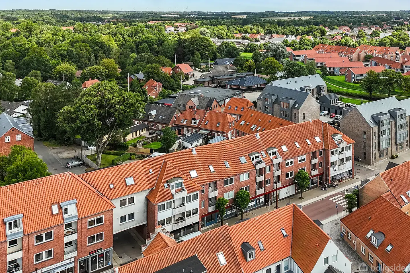 Midt i Varde finder I denne velindrettede lejlighed, som fremstår lys og imødekommende takket være de strategisk placerede vinduer og de flotte trægulve, der går igen i alle rum undtagen køkken og badeværelse. I køkkenet er der fokus på funktionalitet med god opbevaringsplads og vaskefaciliteter. Lignende praktiske løsninger ses i de to værelser, der begge har indbyggede skabe. For enden af gangen ligger et badeværelse med gulvvarme, som er blevet moderniseret. Derudover har sælger lavet et eks