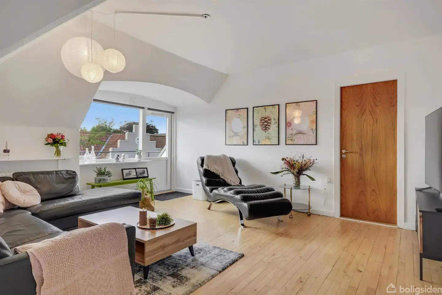 Åbent hus med tilmeldingskrav 10/2 - klik på billede - Rigtig lækker ejerlejlighed i byens centrum med formidabel udsigt over byen og Arnbjerparken. Super indretning, gode parkeringsforhold og masser af shoppemuligheder lige om hjørnet. Perfekt til førstegangskøberne eller til jer, der søger den unikke bolig med det hele lige rundt omkring jer - 5 minutters spadseretur til Arnbjergparken, og lige så kort tur til banegården. Spændende indretning med nyere, flot køkken (2008) og to nyrenoverede badeværelser (2014). Tre gode værelser og to sammenhængende skønne stuer, fra den ene stue samt soveværelse er der i øvrigt udgang til altan, hvor man i den grad kan nyde udsigten over en herlig middag eller en god kop kaffe. Og ønsker man det jordnære, er der en gårdhave med mulighed for at slikke sol eller grille aftensmaden. Overalt i boligen er der rustikke smukke trægulve, og en stemning, der bærer præg af såvel velbevaret originalitet samt supermoderne islæt. Bestemt et besøg værd for jer der søger noget helt specielt.