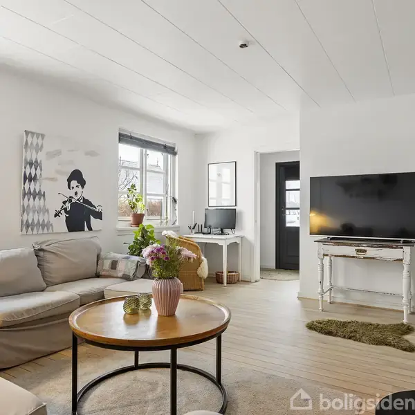 I Dalby Huse finder du dette mindre hus, hvor hverdagen glider let, og omgivelserne skaber en rolig ramme. Du bor i et nært lokalmiljø med kort afstand til skole, indkøb og pasningstilbud, mens skov, strand og åbent landskab ligger tæt på. De omkringliggende marker giver en behagelig, landlig stemning, så du får en bolig, der forener natur og praktiske hverdagsbehov.Indenfor er materialer og farver afstemt i et harmonisk udtryk med trægulve, hvide vægge og gennemførte detaljer, som giver en roli
