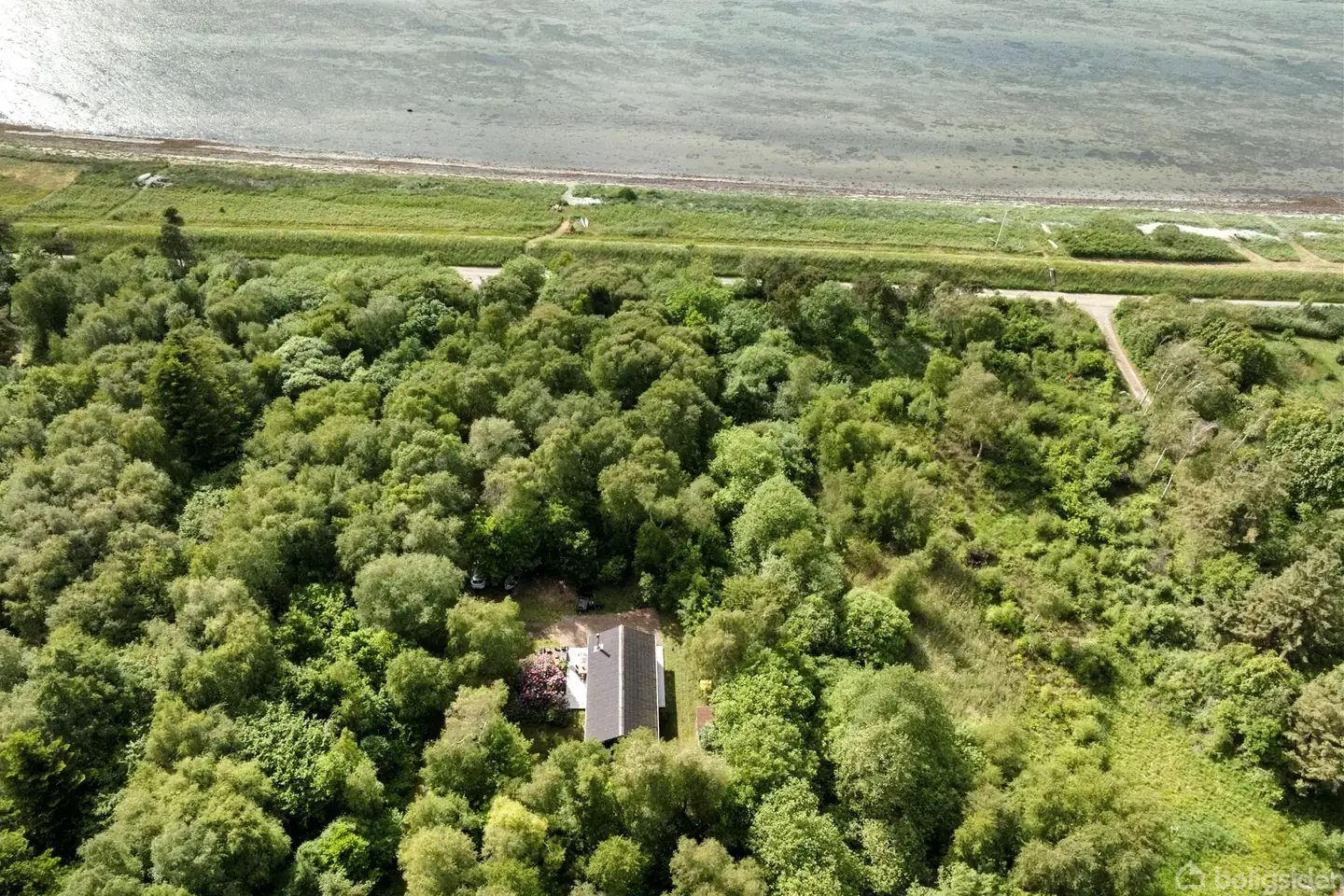 Åbent hus med tilmeldingskrav 3/2 - klik på billede - Har I ikke smag for tætpakkede sommerhusområder, findes der heldigvis et modsvar. På Storkenhøjvej 189 runder den fantastiske skovgrund akkurat en hektar, så her får I natur, fugleliv og absolut fred. Grunden går endda næsten helt ned til kanten af Båring Vig, hvor I kan springe i vandet og bruge timevis på at spadsere langs diget. Og det bedste er næsten, at huset også afspejler sine omgivelser – afdæmpet og enkelt, uden at være primitivt. Straks I kører af motorvejen, begynder vejene at blive mindre, inden en lille grusvej leder jer det sidste stykke. Fritidshuset ligger lige dér, hvor skoven møder kysten, og det skønne strandstykke er langt fra tapetseret med badehåndklæder. Tværtimod vil I ofte opleve at have det hele for jer selv. Et par hundrede meter fra adressen runder I pynten, hvor I kan kigge ind over Æbelø og havnen i Bogense. Byens havnemiljø ligger godt gemt bag de karakteristiske moler, og afstanden er kun et par kilometer. Det betyder samtidig, at I hurtigt kan tanke op på det, I mangler, når I spontant forlænger ferien med et par dage. For det kommer I helt sikkert til. På den store grund vil I også hurtigt bemærke, at skoven ikke er som de fleste danske plantageskove. Den er mere varieret og frodig, end I er vant til, og huset er flot pakket ind i naturen. En lille have har man selvfølgelig anlagt omkring huset, så I har plads til parkering eller joller. Lysningen er også akkurat så stor, at I får masser af glæde af den skønne træterrasse, der fanger solen det meste af dagen. Selve fritidshuset er oprindeligt fra 1991, og de 75 m2 (jf. BBR) er godt udnyttet. Udenpå er huset sortklædt, mens det inden døre fremstår lyst og hyggeligt på tværs af afdelingerne. Tre gode værelser er placeret i den ene ende, hvor I desuden finder et badeværelse med bruseniche og vaskefaciliteter. I modsatte side er køkkenet og stuen integreret i et sammenhængende opholdsområde, og herfra har I tilmed adgang til hems. Loft til kip og højtsiddende gavlvinduer skaber lys og stemning, mens varmepumpen og brændeovnen til gengæld holder huset lunt og hyggeligt i overgangsmånederne. Et ægte fristed til naturelskere og livsnydere. Kontakt os for at høre nærmere.
