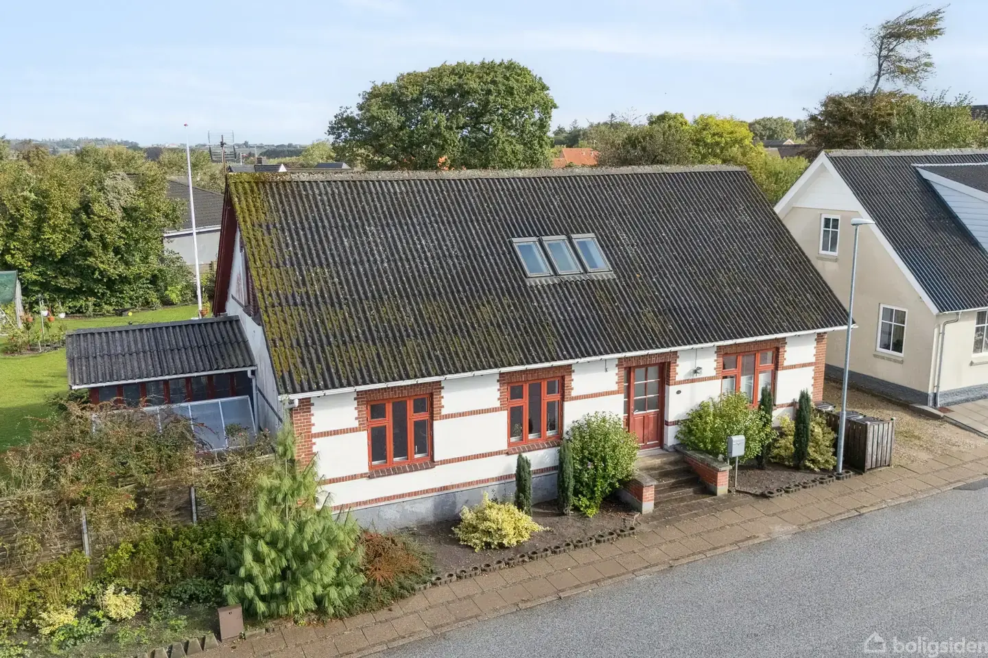 I et roligt kvarter - centralt beliggende i Frøstrup. En aktiv by med et aktivt og velfungerende foreningsliv og mange sociale aktiviteter for alle aldersgrupper. Her er alle hverdagens fornødenheder inden for ganske kort afstand - indkøb, butikker, skole, virksomheder og gode muligheder for forskellige fritidsaktiviteter.Meget charmerende bolig fra 1908 med smukke detaljer i murværket. I perioden fra 1992 og frem er huset omfattende renoveret, og der er bl.a. lavet gulvvarme i hele stueplan. He