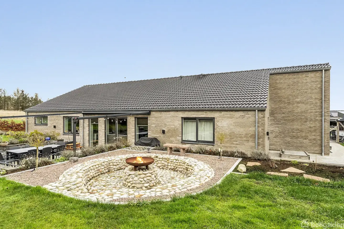 Hvis I leder efter en rummelig villa med plads til hele familien, så er Strået 5 måske lige det, I går og drømmer om. Her finder I et Hybel-hus fra 2018 på hele 188 m², og dertil kommer en dobbelt garage. Netop denne grund byder på et flot kig ud over markerne, hvilket bidrager til den i forvejen gode stemning. Indenfor har de nuværende ejere haft fokus på optimal udnyttelse af pladsen. Det betyder, at I efter entréen mødes af et stort, åbent opholdsrum, hvor køkken, spisestue og stue ligger i